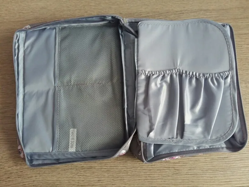 Косметичка за свои деньги хорошая и вместительная. Доставка 3 недели. Упаковка - почтовый пакет. Швы везде ровные, единственное что смущает - остался необработанный край (думаю не стоило так оставлять). На молнии две собачки, даже есть ручка для переноски косметички.