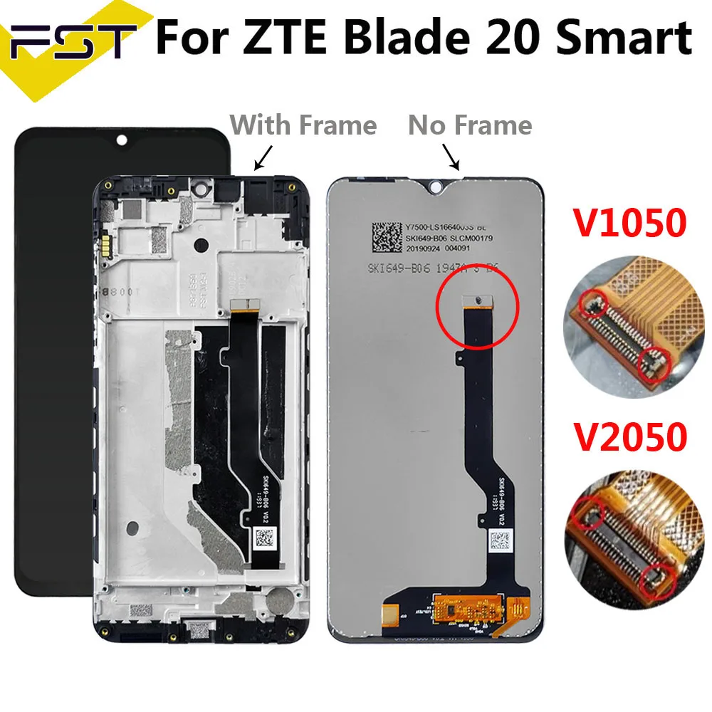 ЖК-дисплей с сенсорным экраном для ZTE Blade 20 Smart, 6,49 дюйма, V1050, V2050, с дигитайзером в сборе и рамкой
