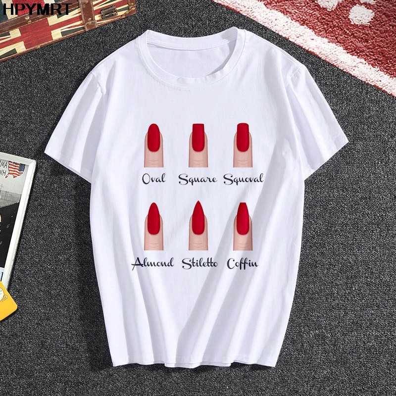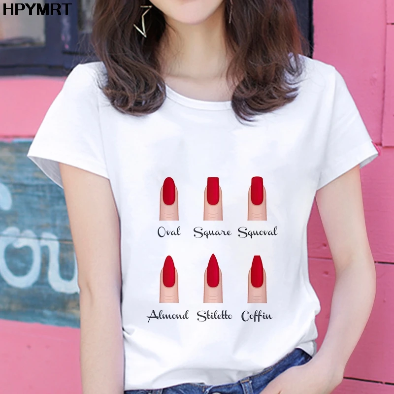 Новая футболка женская мода персональный дизайн ногтей принт Забавный повседневный летний короткий рукав Harajuku короткая женская футболка Женские топы