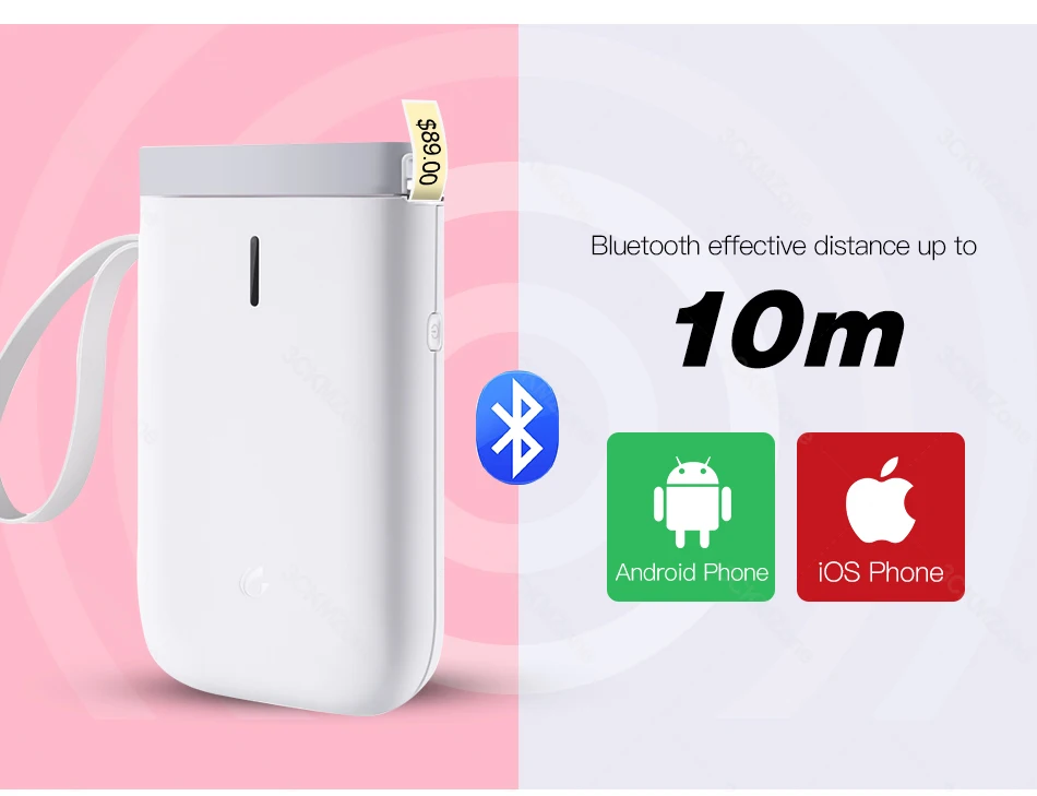 Беспроводной дизайн, поддержка печати на больших расстояниях.Расстояние беспроводной связи до 10 м.Прямой термический, без чернил, тонера или лент.Поддерживает все основные форматы этикеток: цена, дата, размер, вес, имя и т. Д.Универсальный, простой в использовании.Компактный и легкий, удобный для переноски.Аккумулятор емкостью 1200 мАч поддерживает длительное использование.