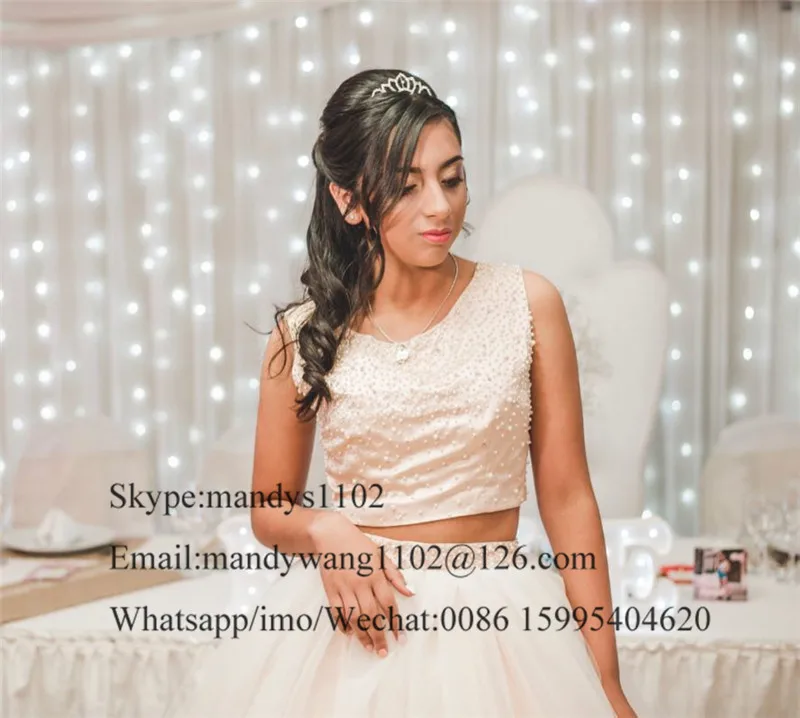 Великолепное бальное платье, пышные платья, длинное, 2020, сексуальное платье из двух частей, 15 лет, Блестящий Жемчуг, vestidos de festa de 15 anos