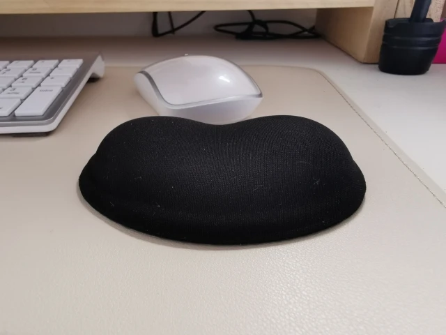 Размер ориентировочно с ладонь, хорошая опора для запястья Это не коврик, а именно подушка под запястье Не скользит по столу при работе - снизу есть твердая основа Внутри похоже силиконовое наполнение , тактильно - комфортная поддержка руки Очень понравился, супер удобный и компактный, на столе занимает мало места, качественный Доставка (2-3 недели) и упаковка (пакет) стандартные