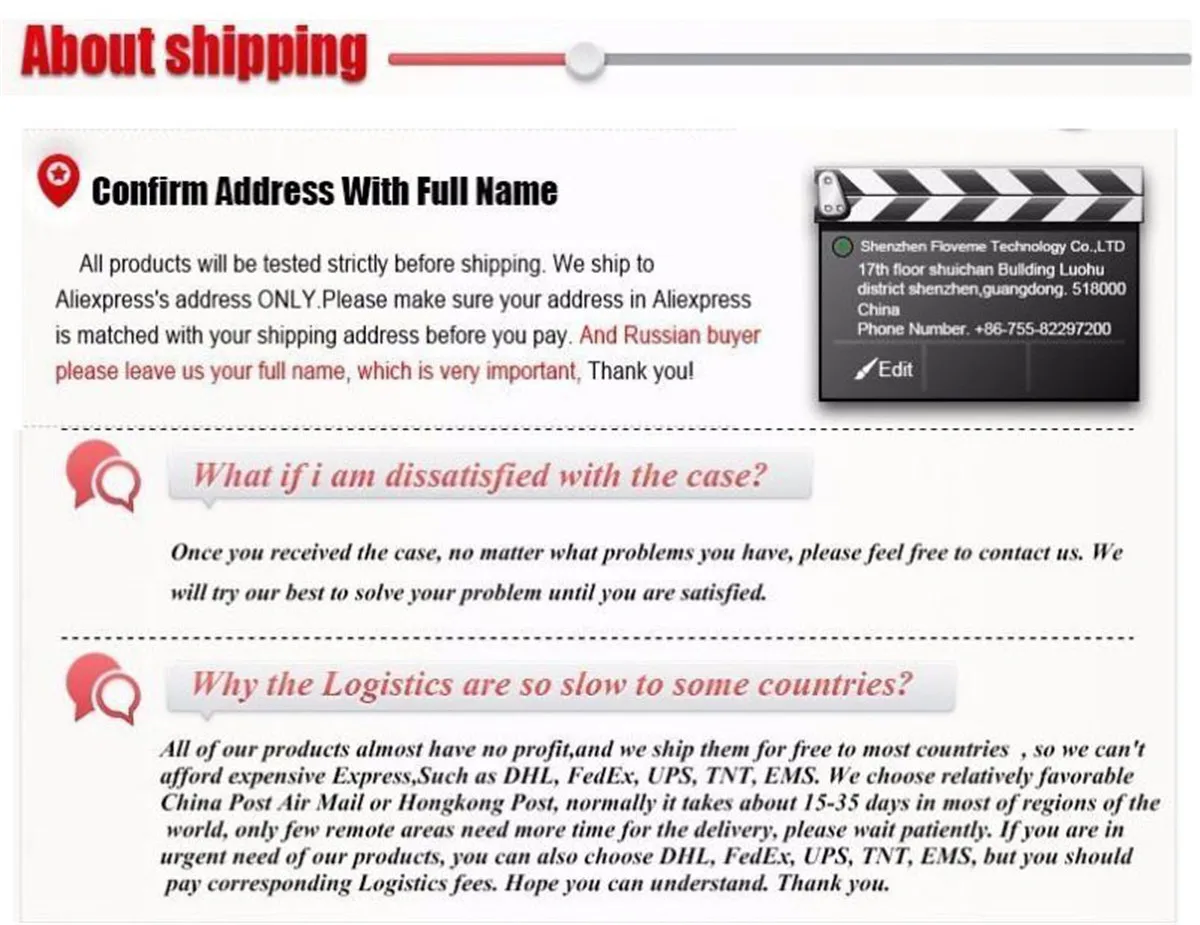 Доставка в Харьков составила 18 дней.Упаковано хорошо в пенопласт.короб(при доставке подмяли,но вина не магазина) и все цело.Пока не клеил,а при прикладывании вроде подходит.В коробке 2 стекла на телефон,2 стекла на камеру,салфетки и купон на 5% скидки на следующие покупки(насколько он сработает?).Магазином вобщем доволен и рекомендую.
