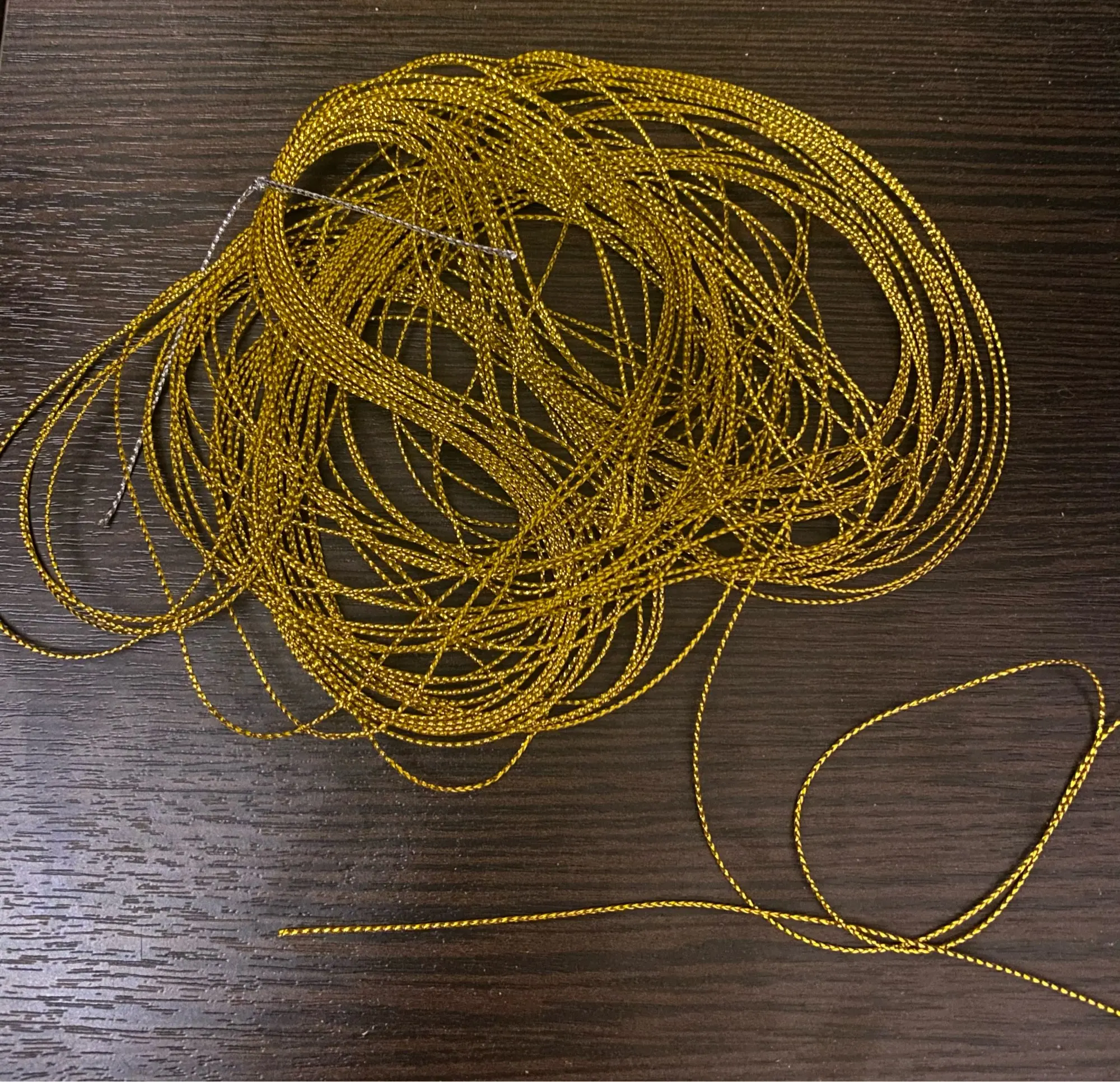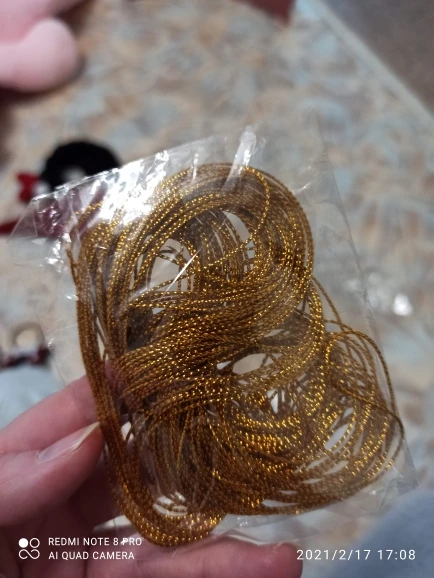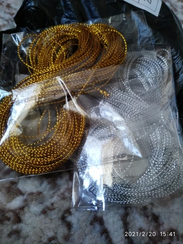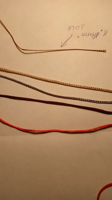Нитка красивая, но это не веревка и не шнурок, а нить. Покупала для рожек-единорожек, а так же для банттиков, но это не пойдёт, т.к. нитка. Но это моя вина, нужно читать отзывы, а не смотреть фото продавца, т.к. на фото кажется, что это шнурок, а в отзывах пишут, что берут для елочных шаров, да, для шаров и бирок самое то. И да, я больше часа распутывала эти нитки((( Внизу фото этого "шнурка" и моих шнурков для сравнения.