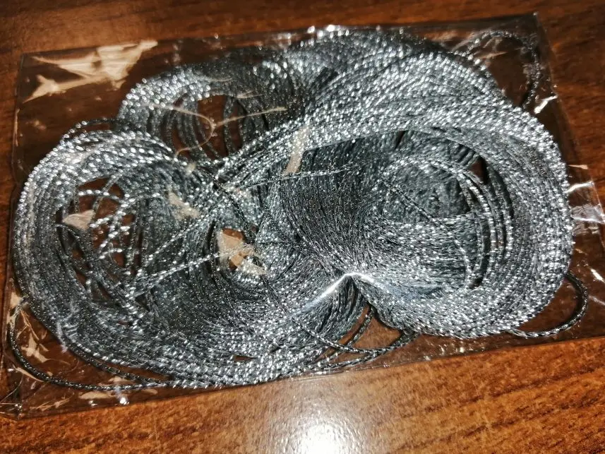 Замечательный шнур серебряного цвета! 20 см. в подарок. Соответствует описанию. Спасибо продавцу!!!