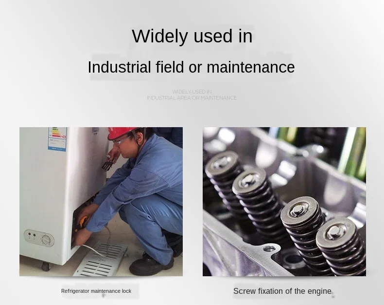 Используется для постоянной блокировки и герметизации нитей ниже M36. Это может предотвратить ржавчину и коррозию нити. Его можно разобрать путем нагрева и инструментов.