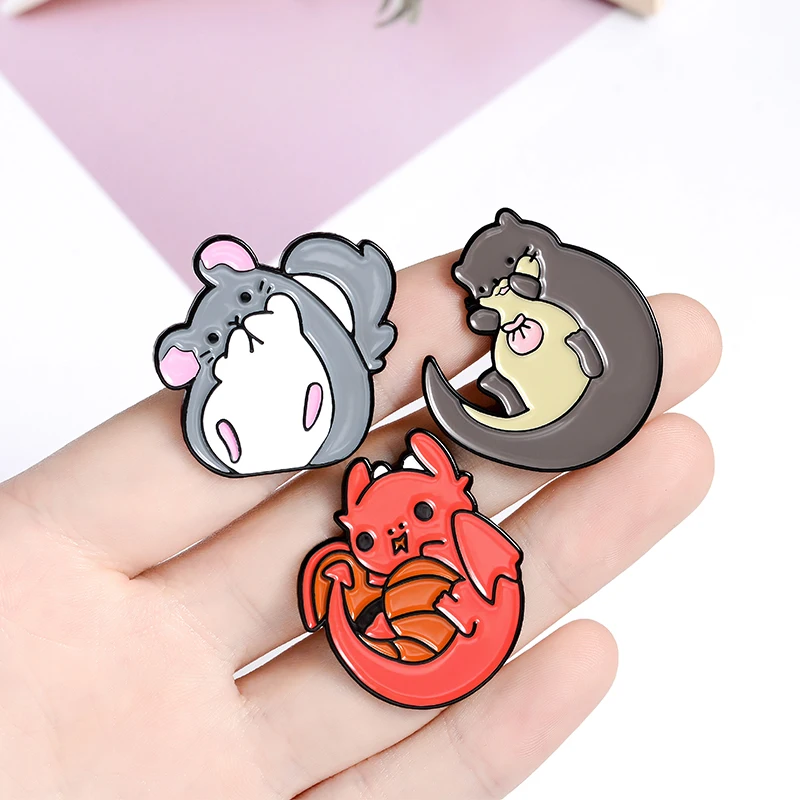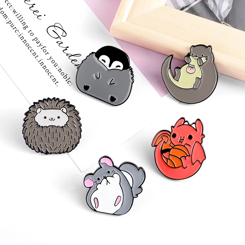 Милые животные эмалевые заколки на лацкан Hedgehog выдра Пингвин хомяк броши в Форме Дракона значки заколки подарки для друзей оптовая продажа ювелирных изделий