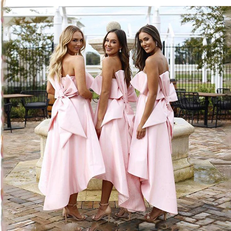 Весеннее платье подружки невесты, без бретелек, с бантом на спине, подружки невесты, для выпускного вечера, вечерние платья подружки невесты