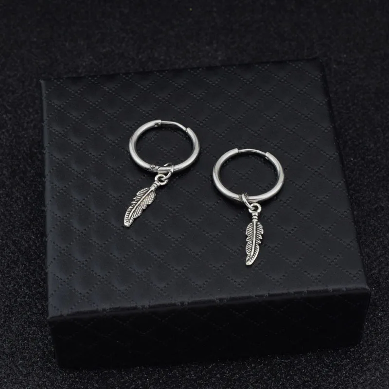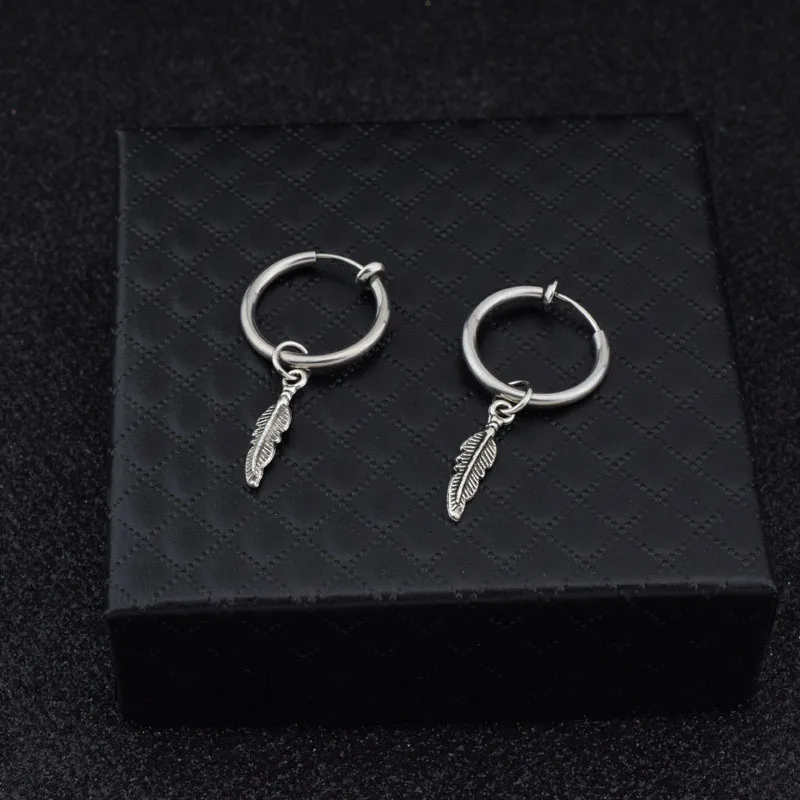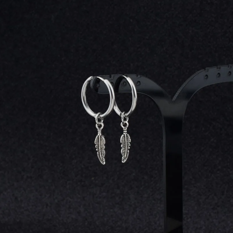 Мальчик лист титановое перо кулон обруч падение серьги корейские юв...