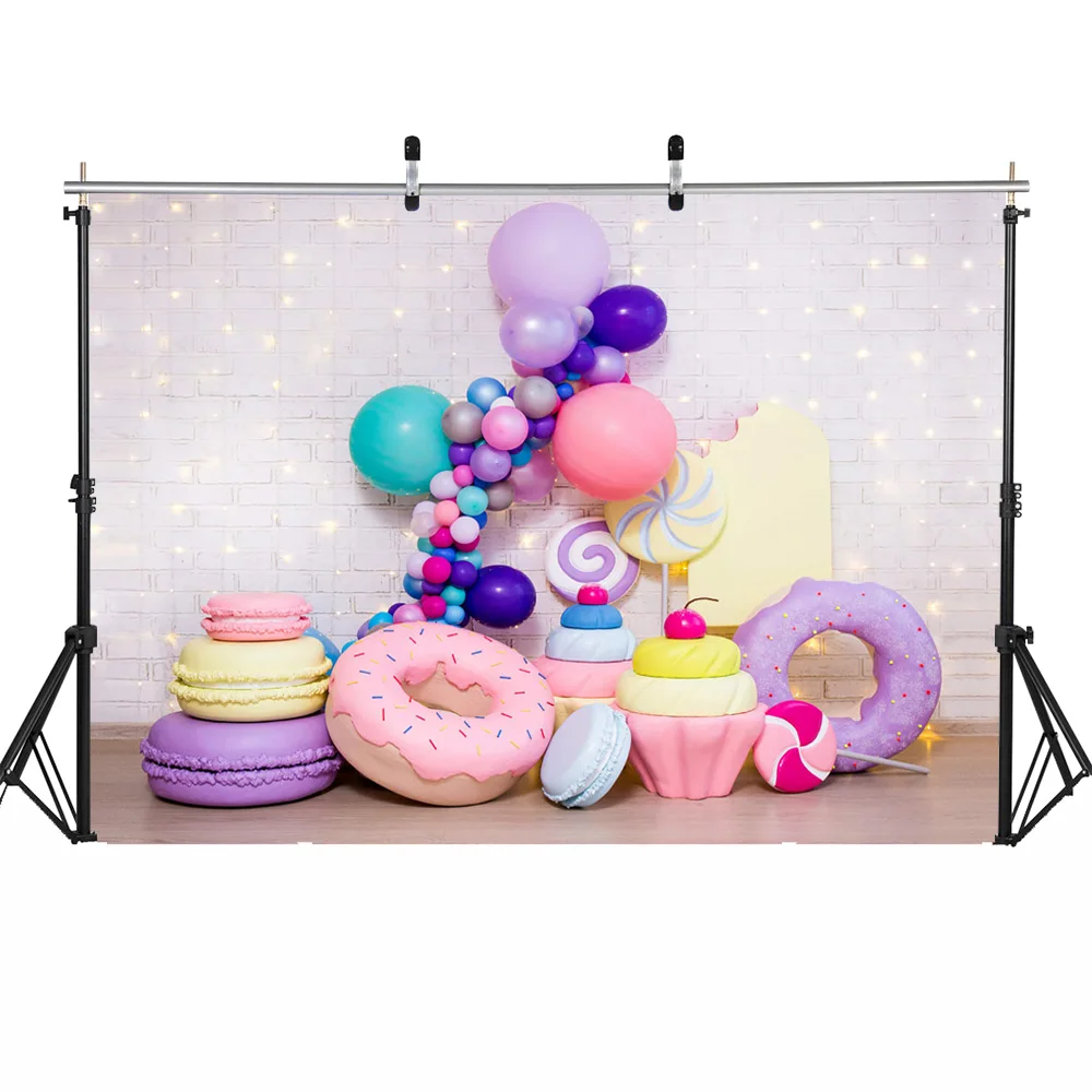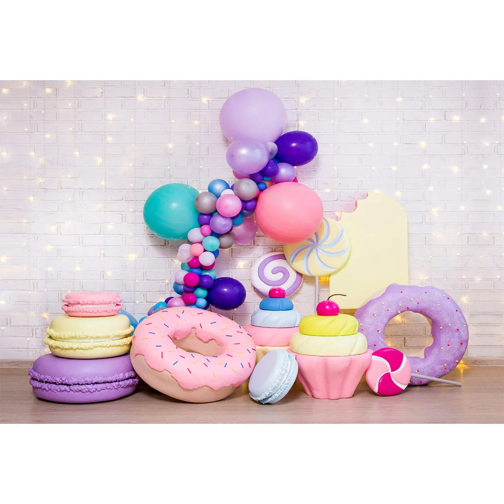 Mocsicka пончики конфеты первый день рождения фон белая кирпичная стена ребенок день рождения торт разбивать фон фотосессия воздушные шары реквизит