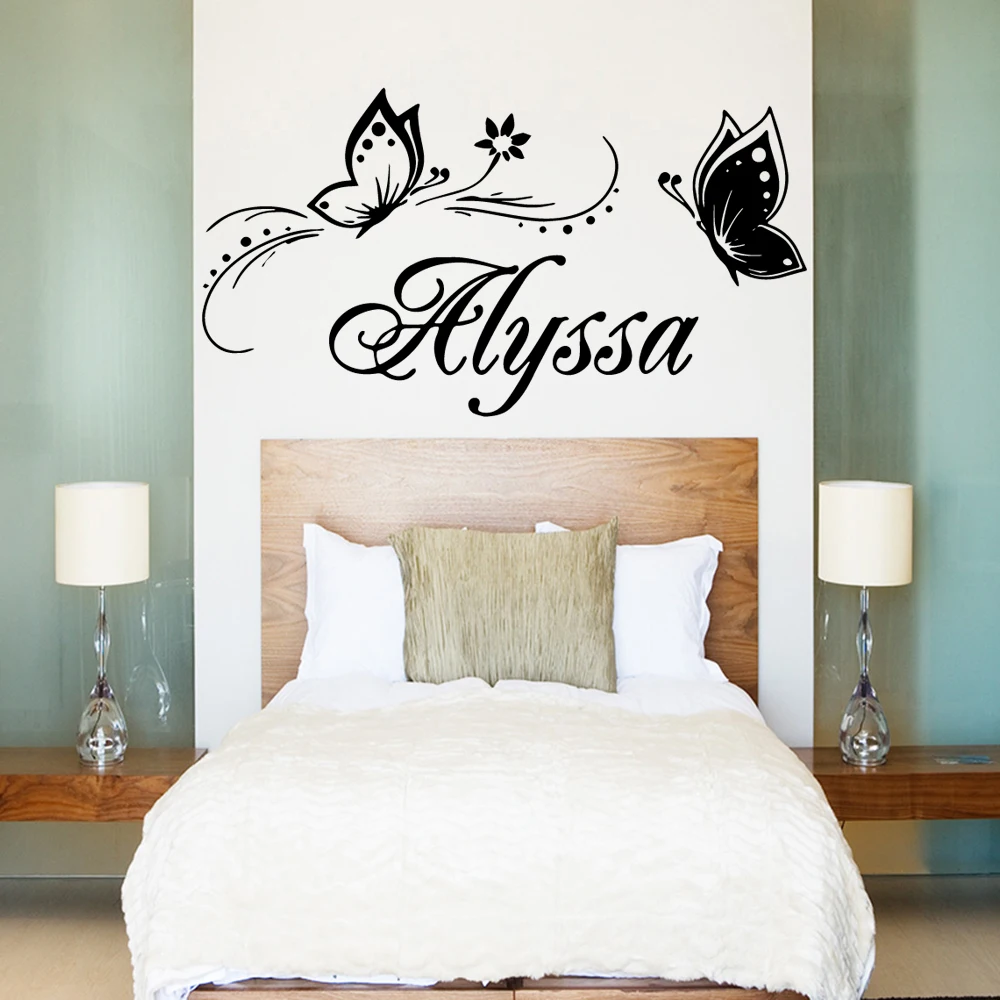 Персонализированные виниловые наклейки с бабочками, наклейки на стену, украшения для спальни, художественные наклейки