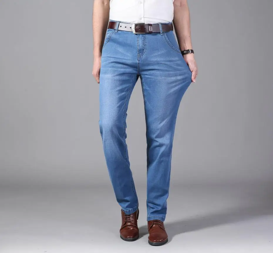 2020 Новые мужские джинсы деловые повседневные светильник синий эластичная повязка на головку, модные джинсовые брюки для мальчиков, мужской, Фирменные Штаны для детей