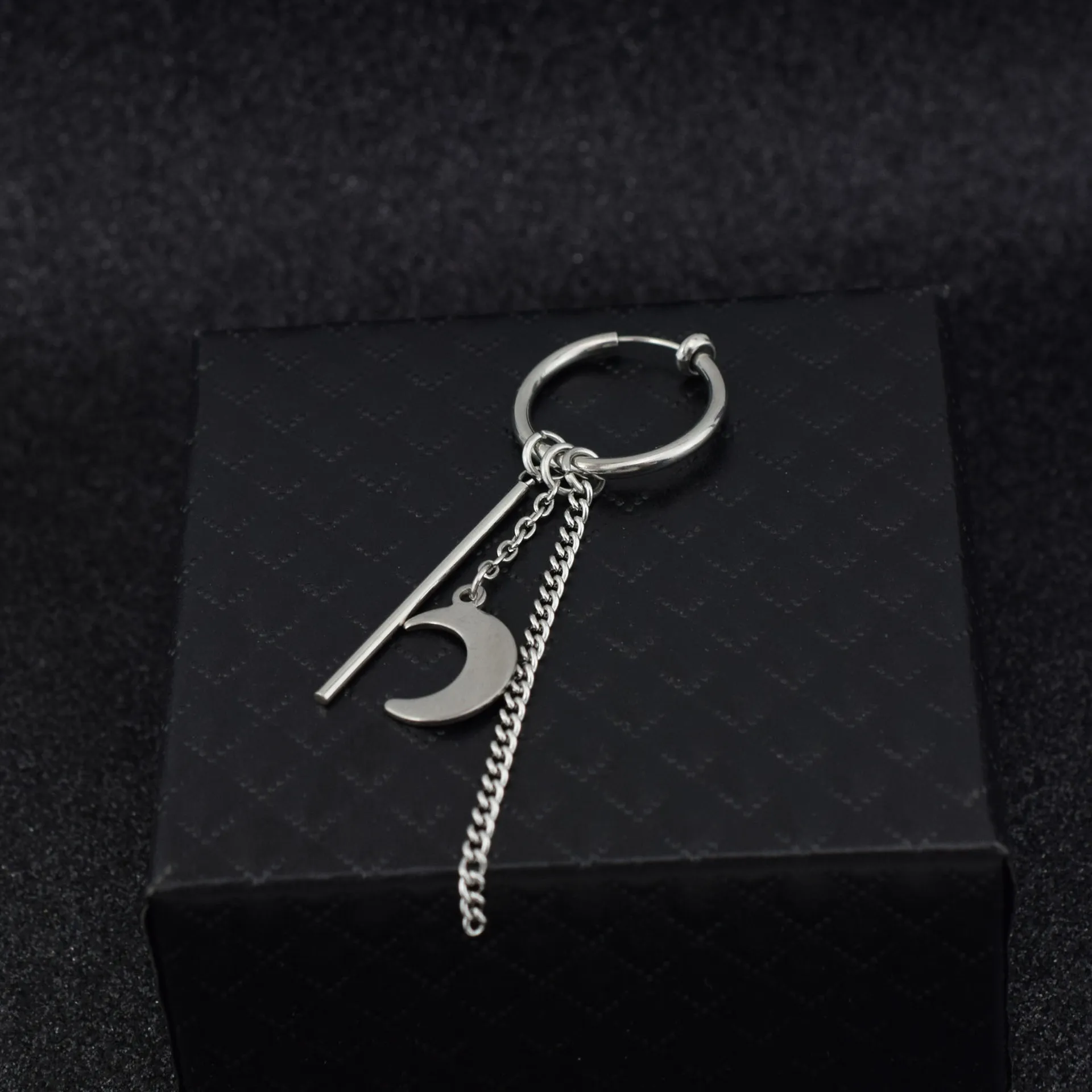 Серьги унисекс, из нержавеющей стали, с цепочкой в форме Луны