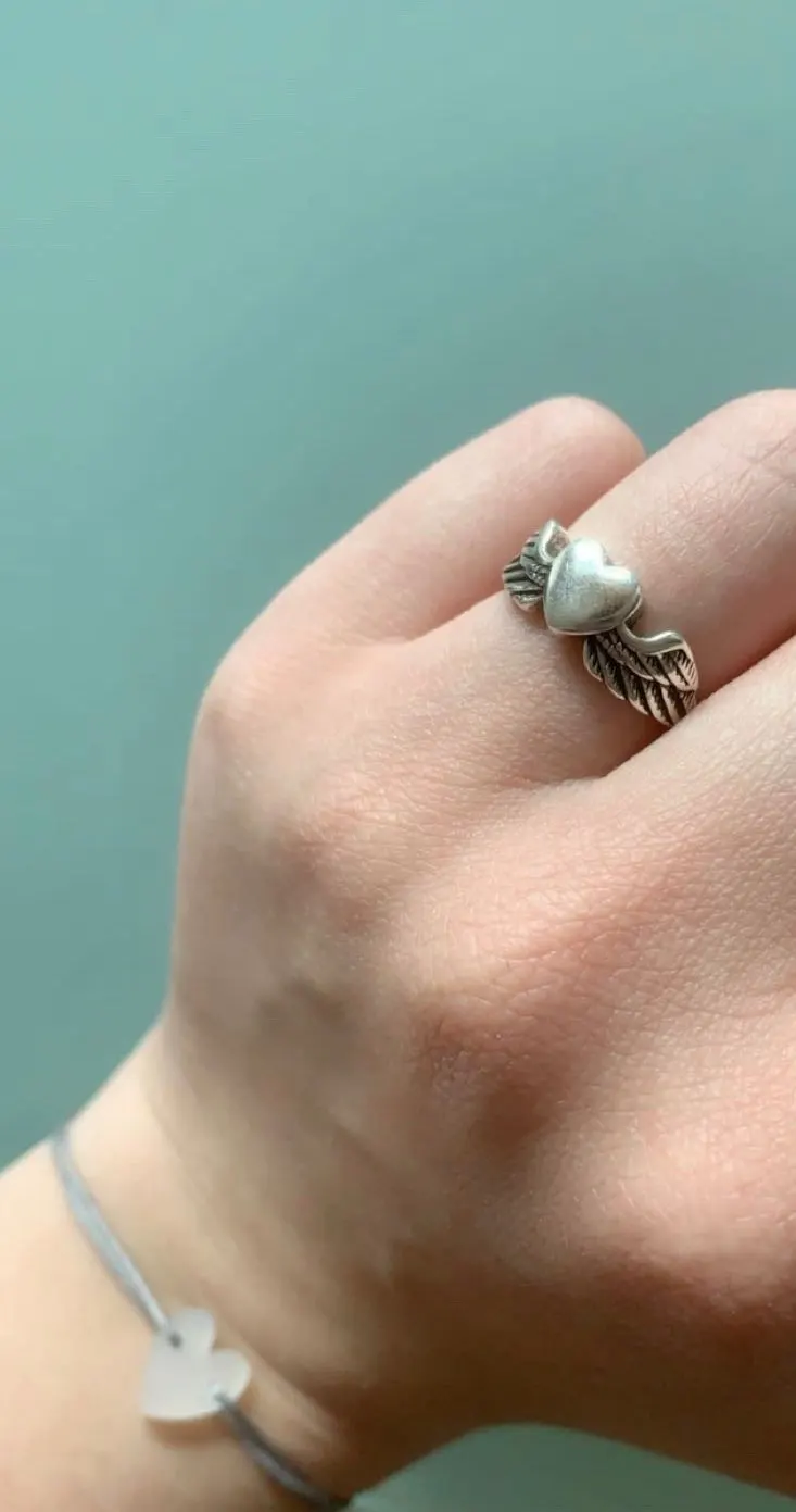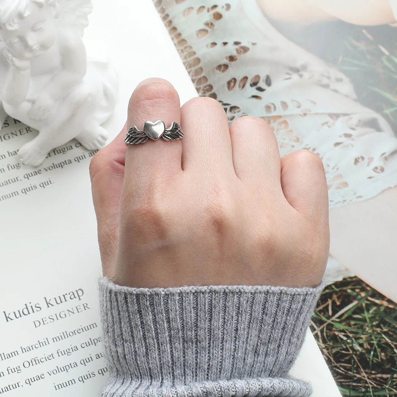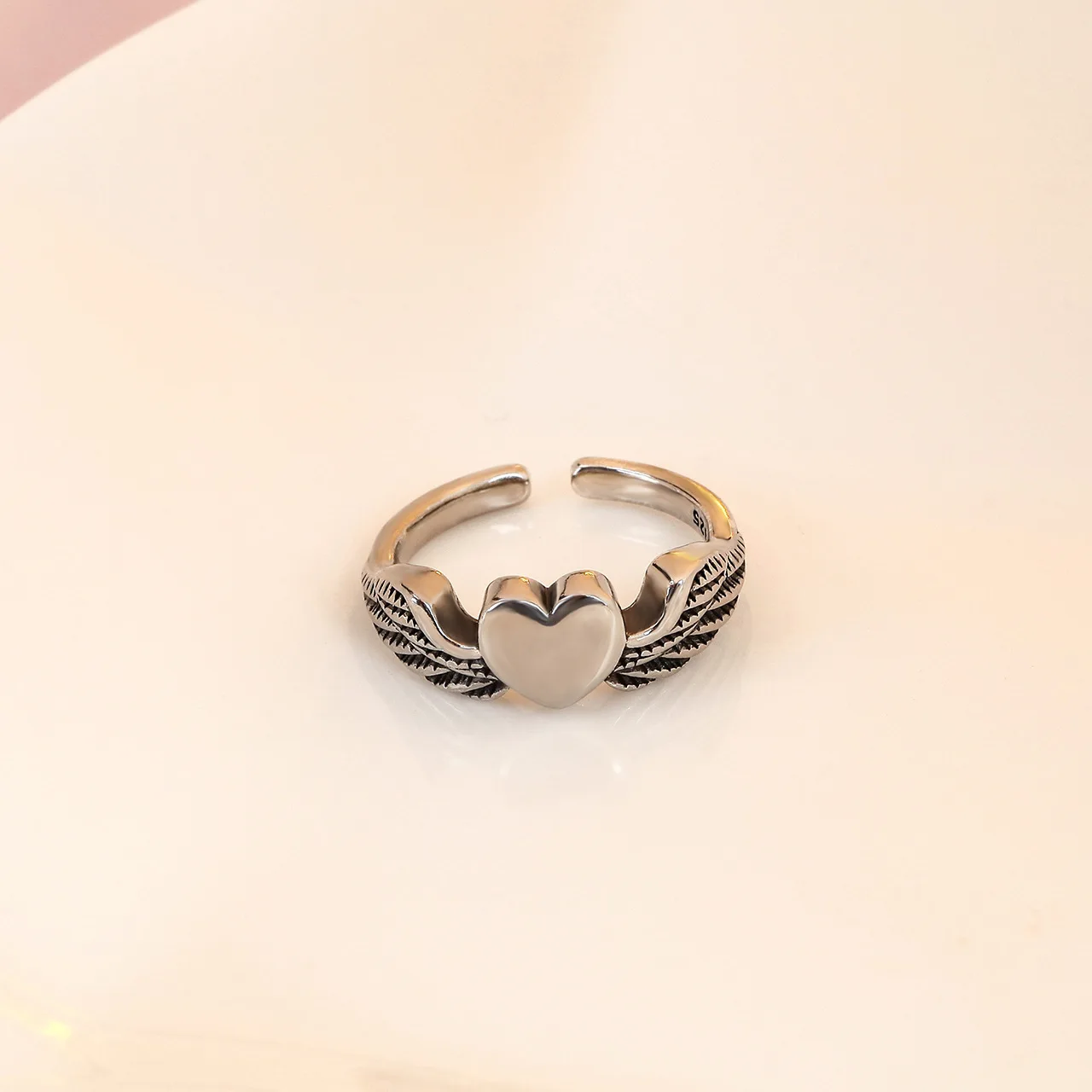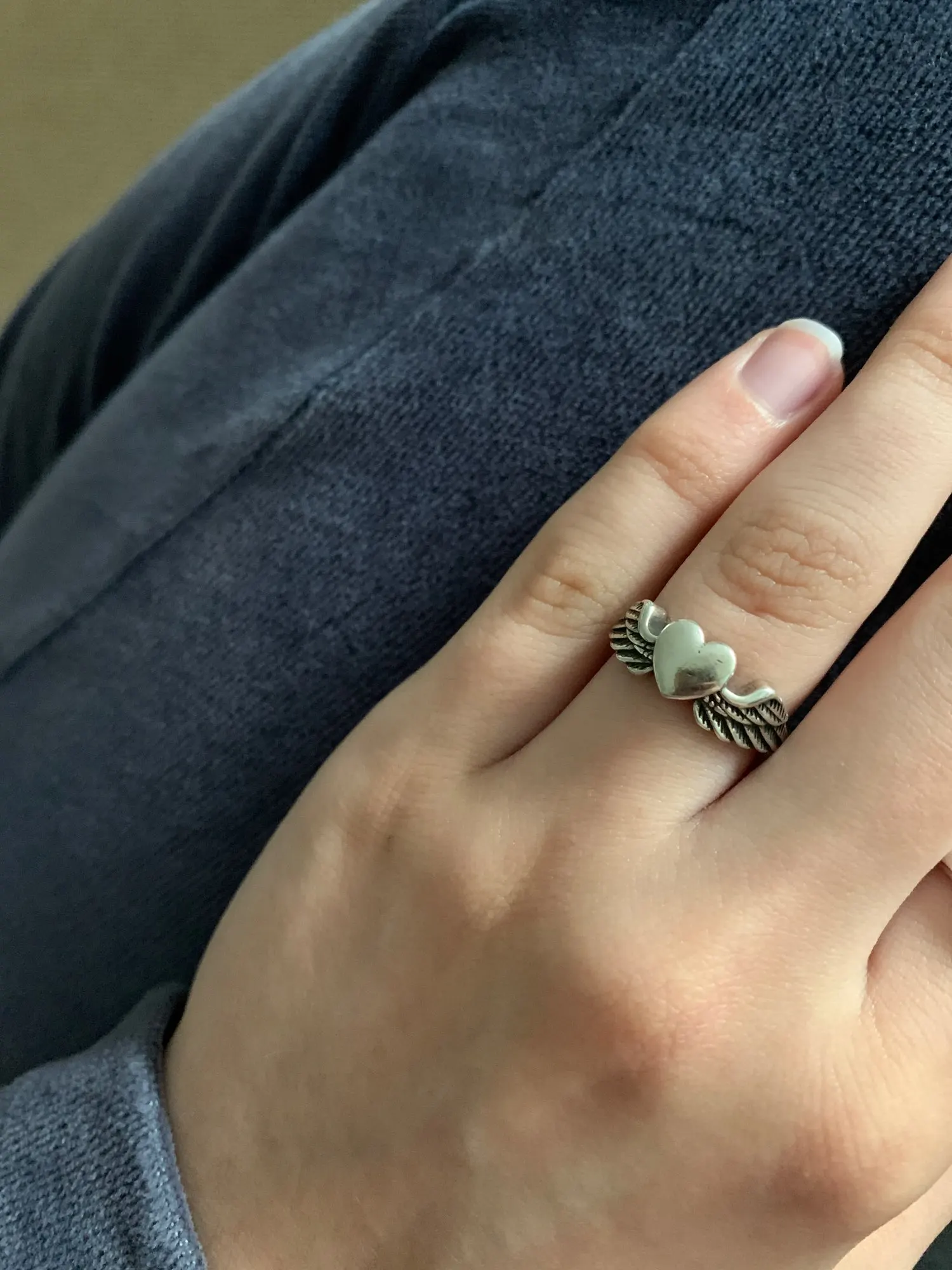 Кольцо женское, винтажное, серебристого цвета, с регулируемыми крыльями в форме сердца