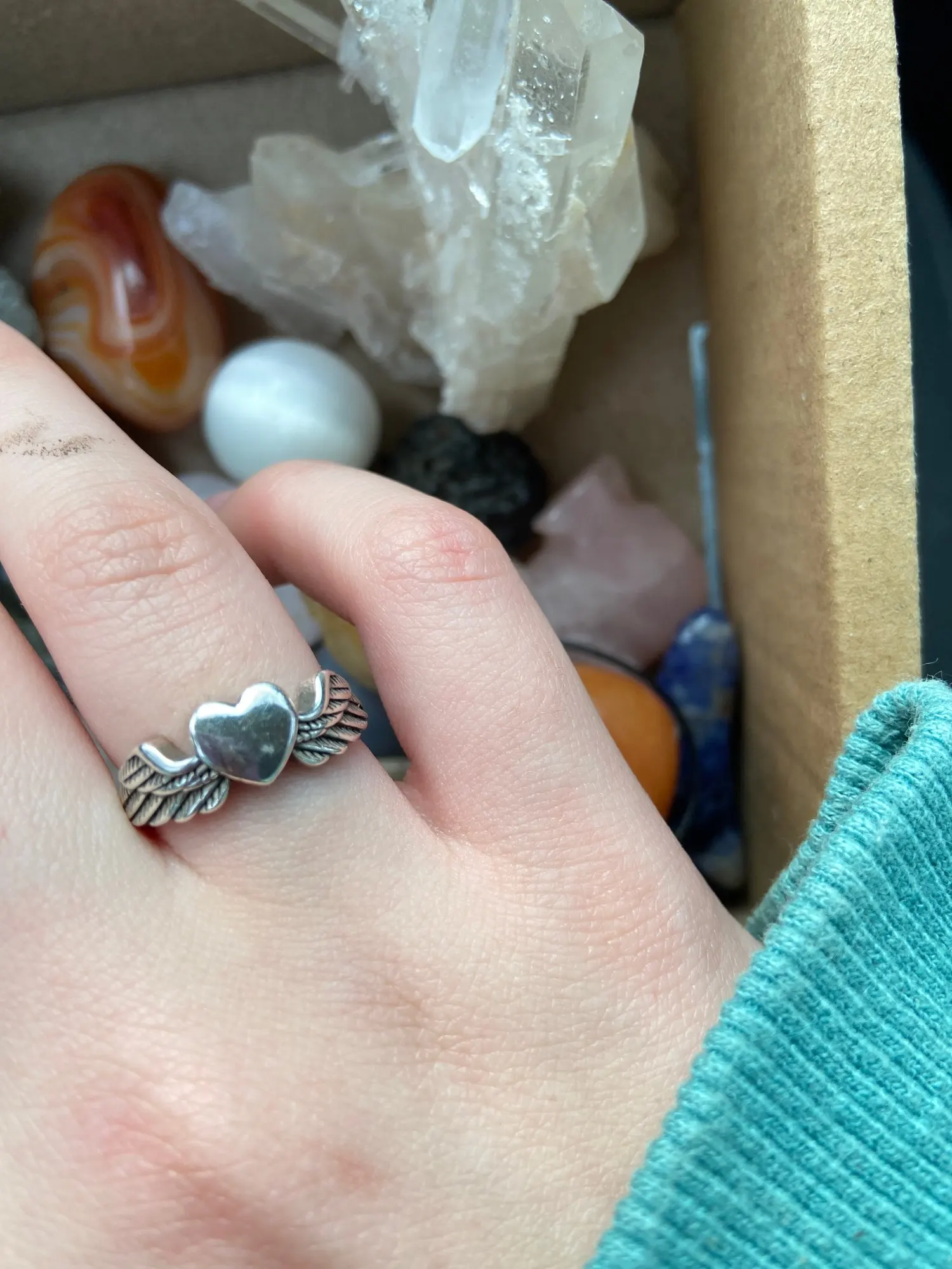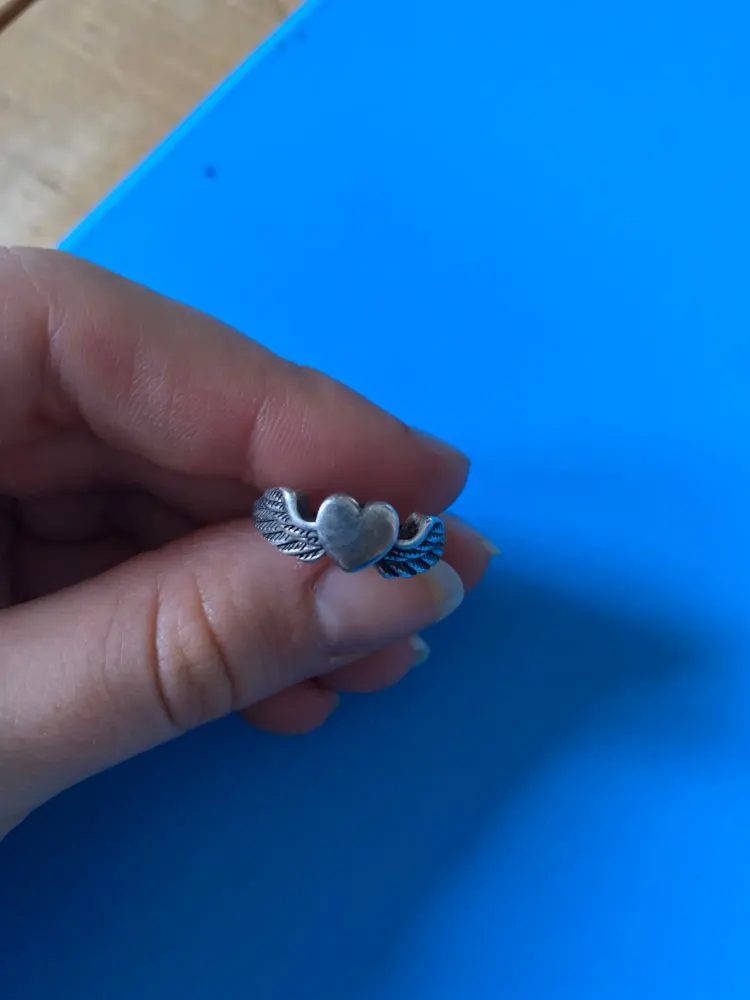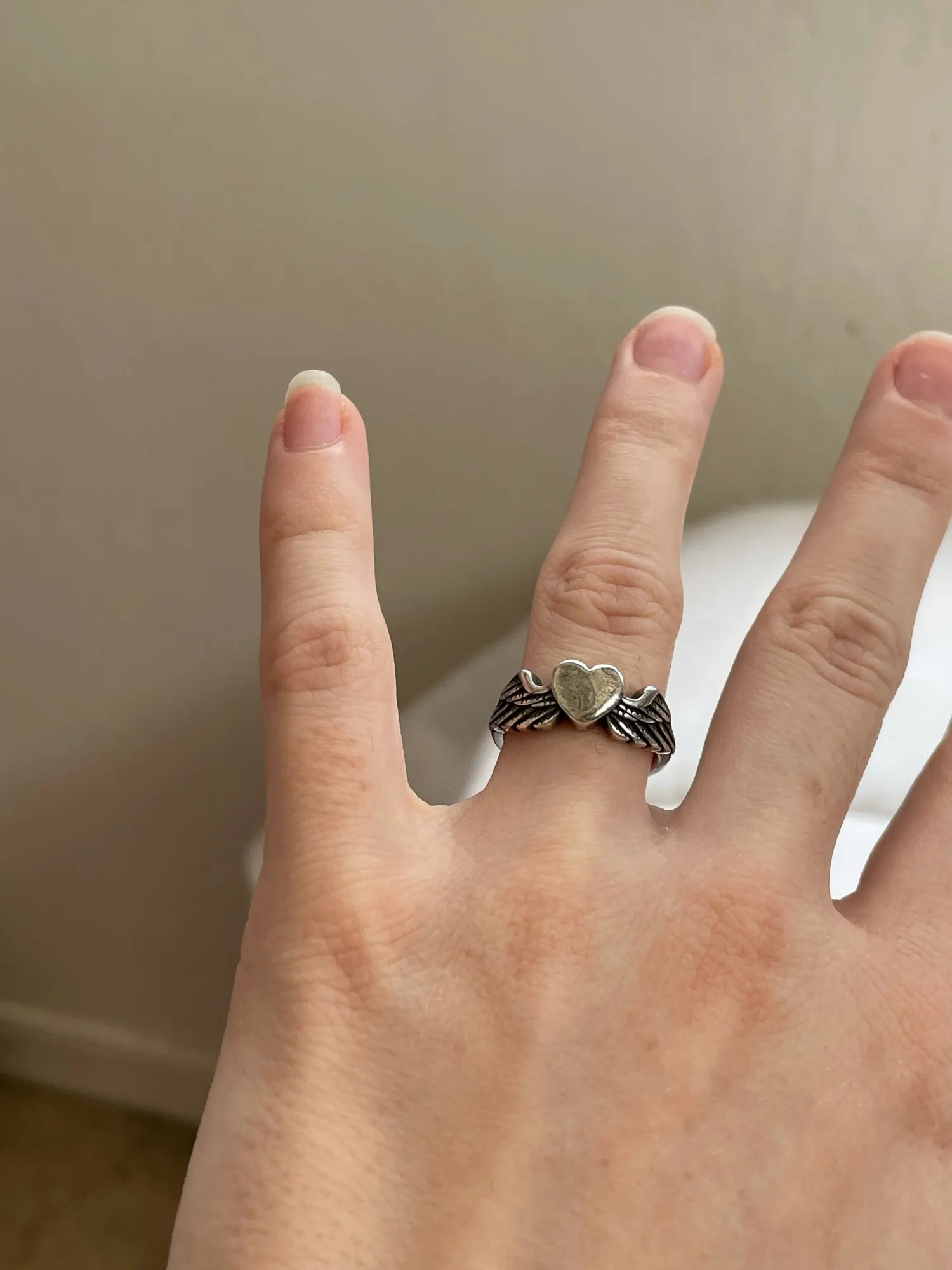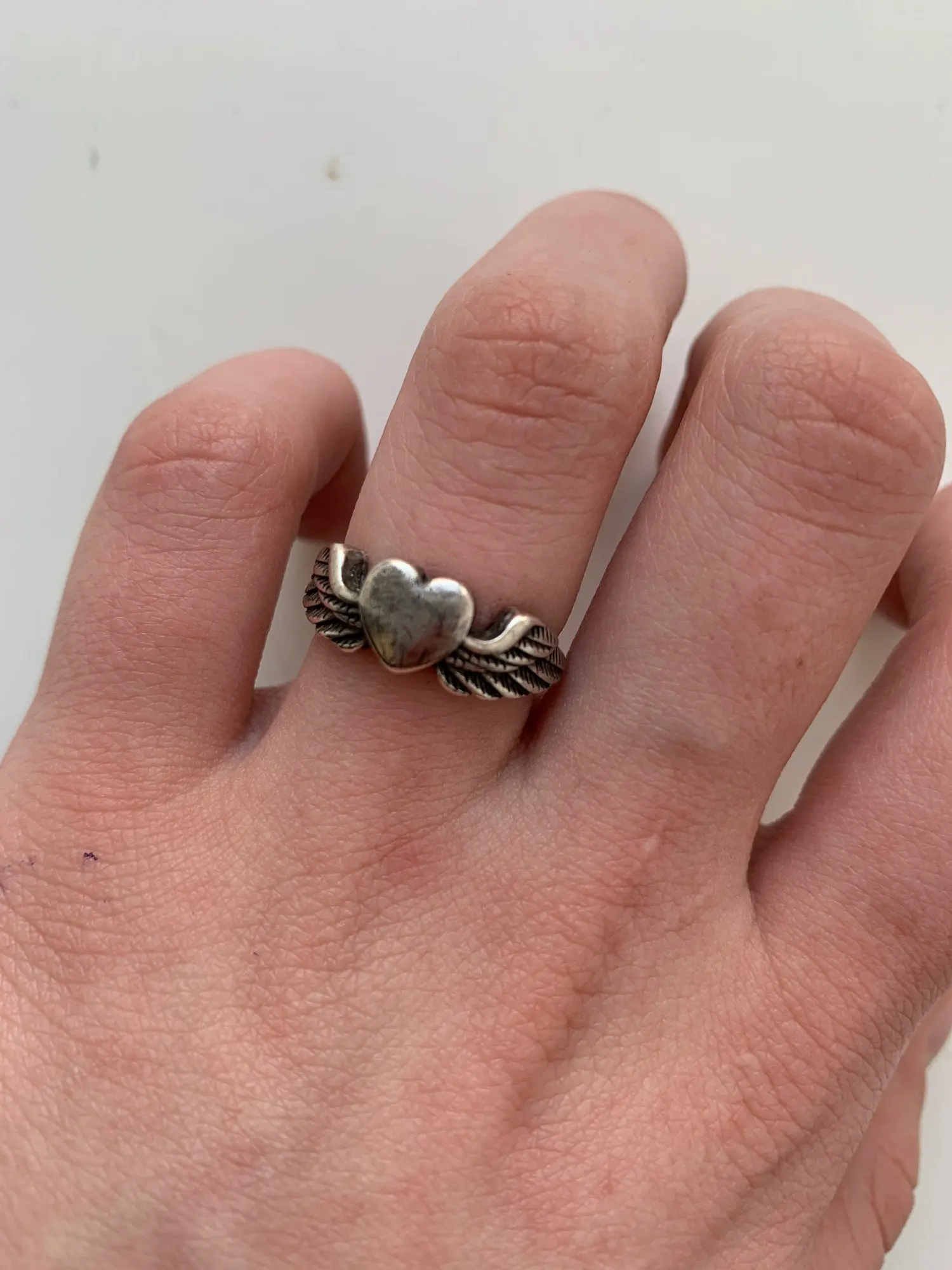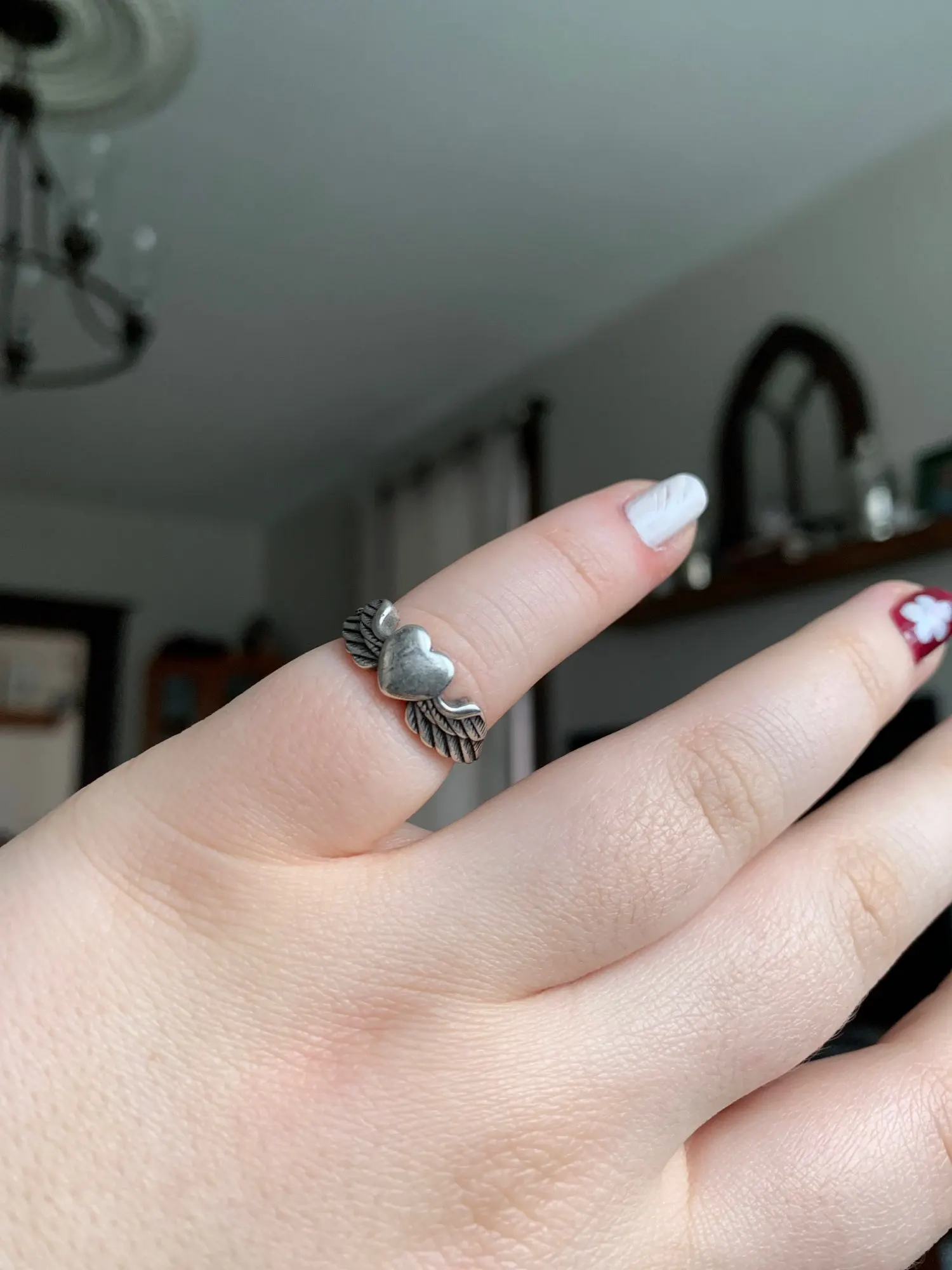 Кольцо женское, винтажное, серебристого цвета, с регулируемыми крыльями в форме сердца