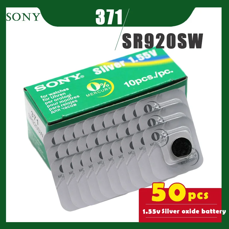 50 шт. SONY оригинальный 371 SR920SW 1,55 в таблетка из оксида серебра батарея 171 LR920 LR69 AG6 для часов игрушки однозернистая упаковка