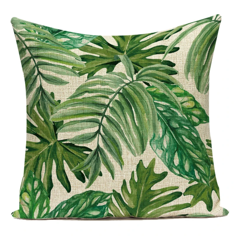 Декоративные подушки из полиэстера, тропические зеленые растения, л...