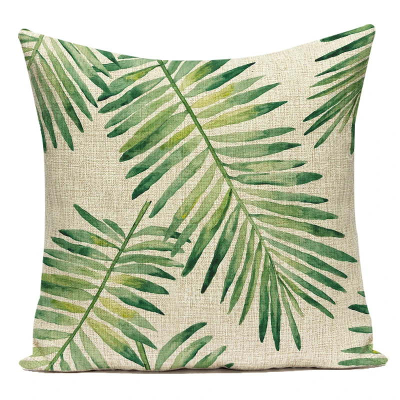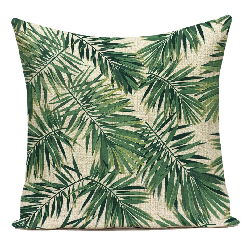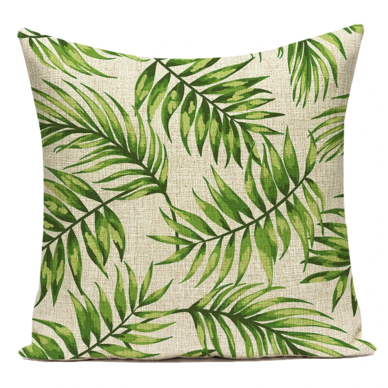 Декоративный чехол для диванных подушек, наволочка с зелеными тропи...
