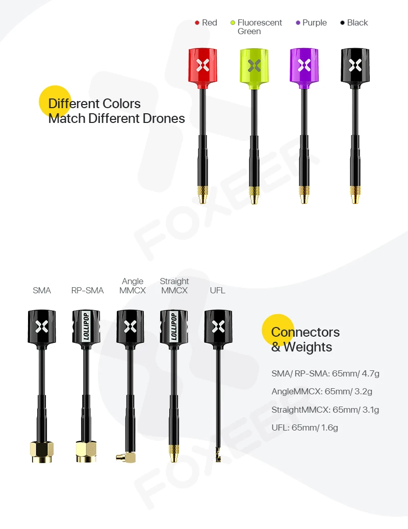 Foxeer Micro Lollipop 5,8G 2.5DBi с высоким коэффициентом усиления Omni антенна RHCP FPV MMCX прямоугольный RHCP UFL Super Mini для дрона RC FPV