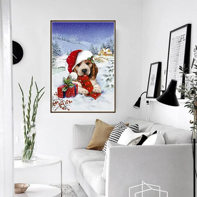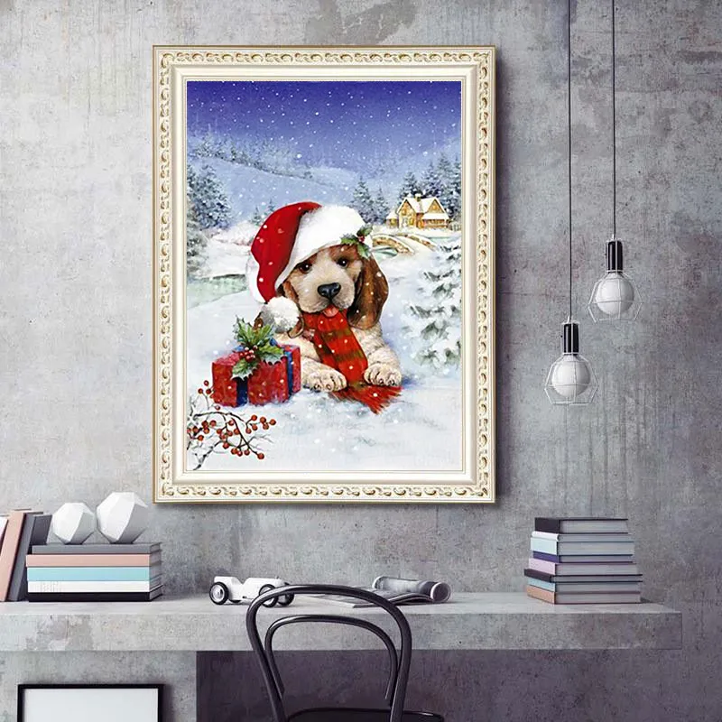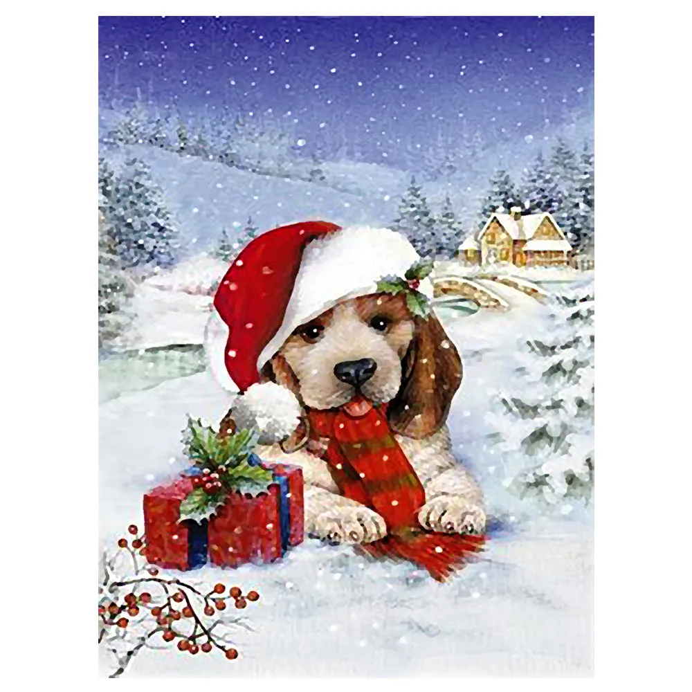 Алмазная 5D картина, полностью алмазная, Новая Рождественская мозаика с собакой, вышивка, украшение для дома