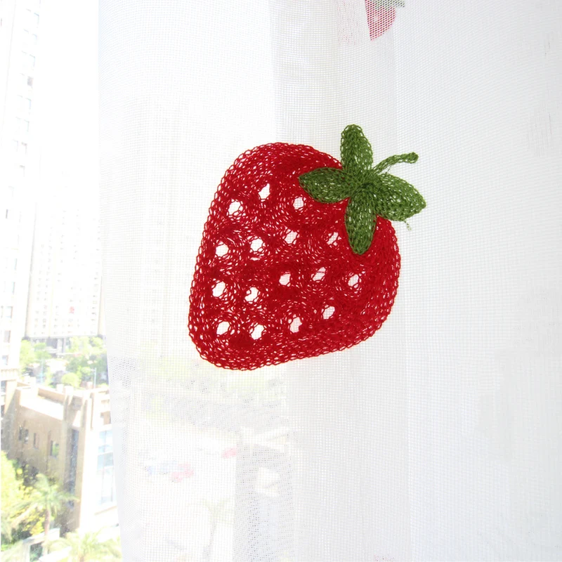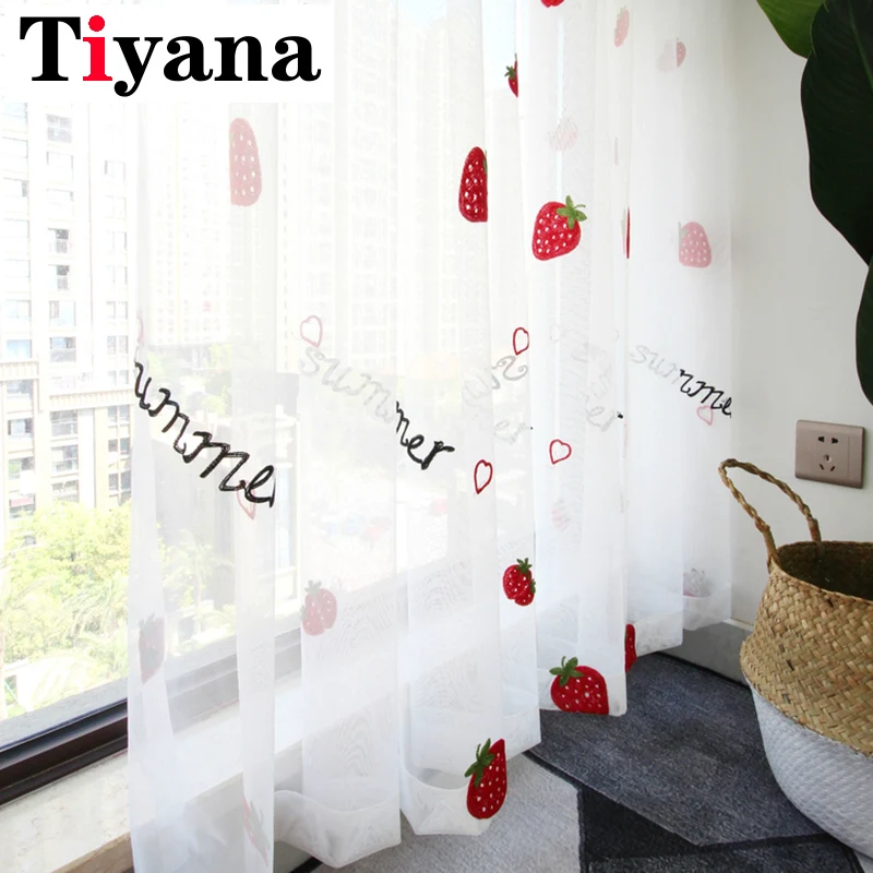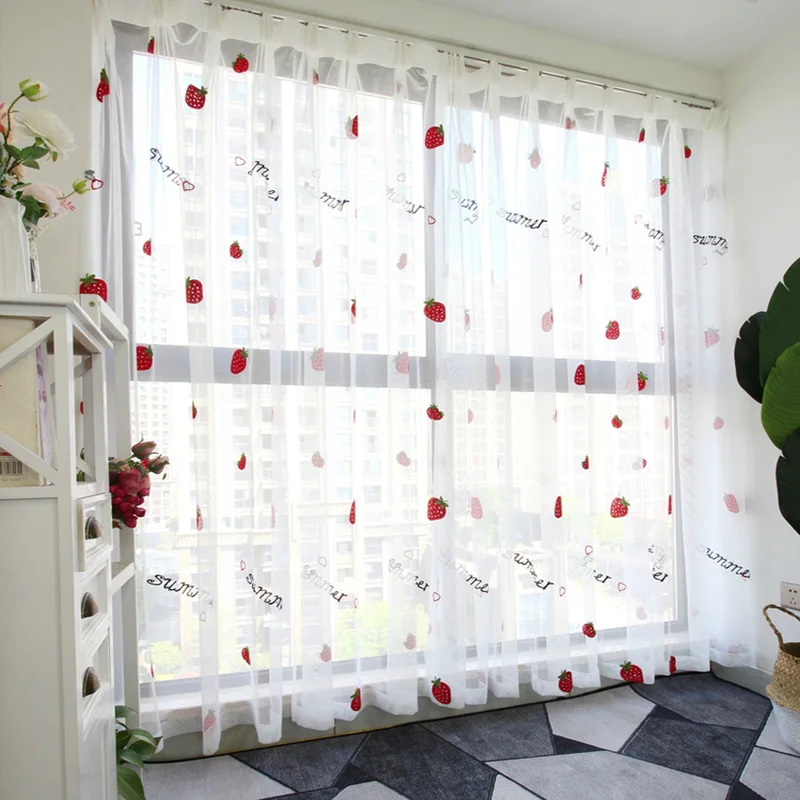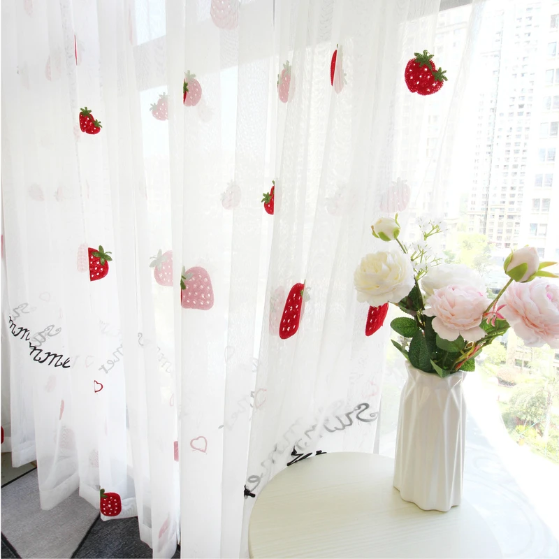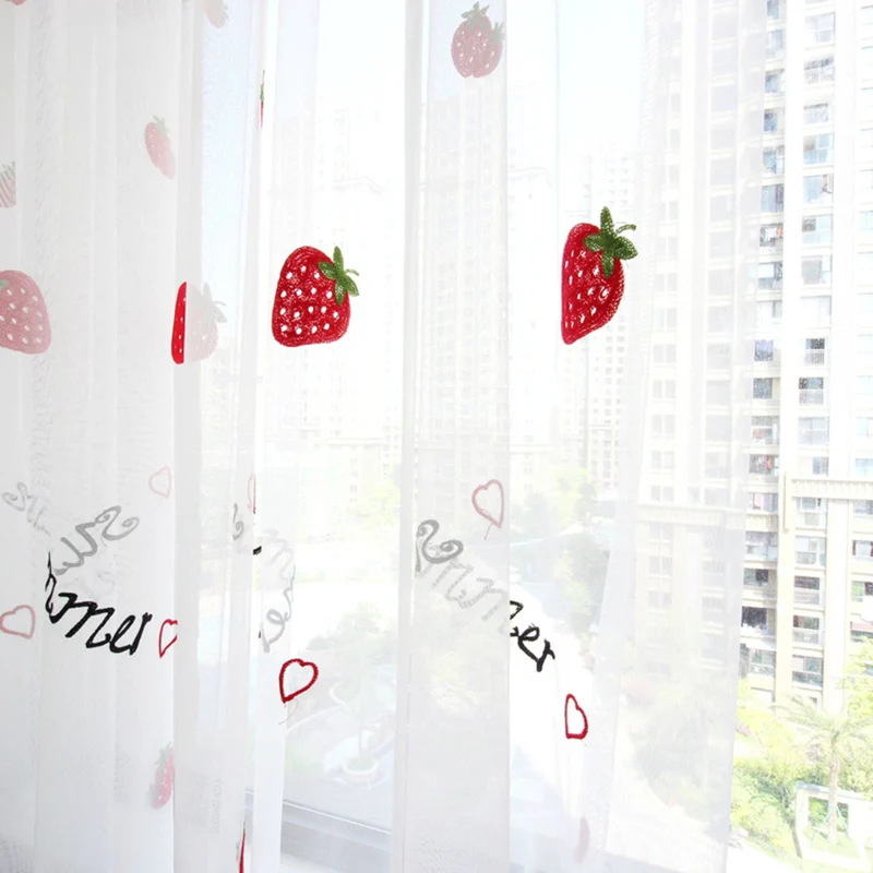 Милые тюлевые занавески с клубничкой для девочек, гостиной, спальни, занавески на окна, домашний декор, белая вышитая прозрачная вуаль, с рисунком, на возраст от 2 до 8 лет