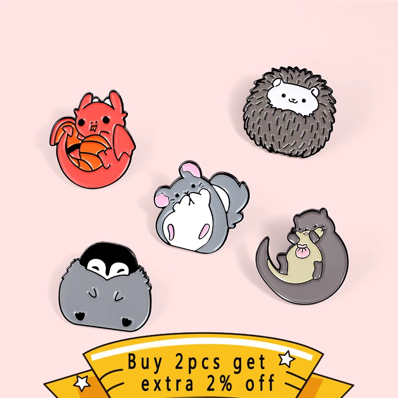 Для ежика, шиншиллы Дракон Пингвин выдра эмаль на булавке на мультф...