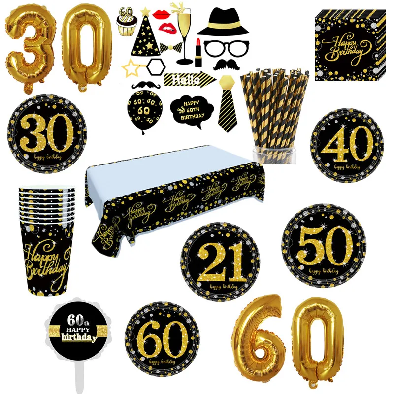 Одноразовая посуда для дня рождения, шары, баннер для взрослых, 30, 40, 50, день рождения, украшения для вечеринки, товары