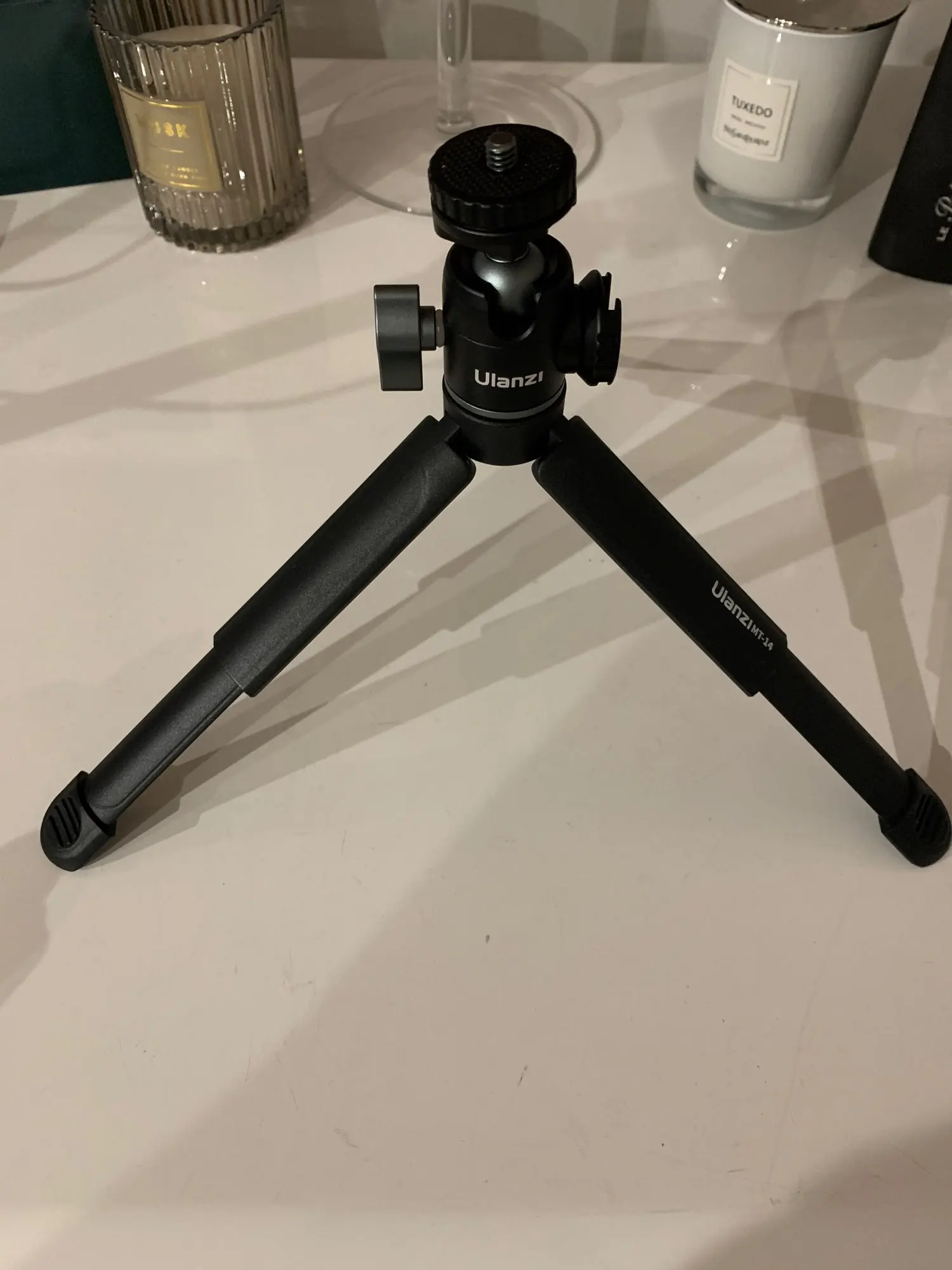 Он кажется немного хрупким, и ноги могут быть расширены только в 1 положении, но в целом это хороший маленький штатив. Холодный башмак очень удобен при необходимости крепления вспышки