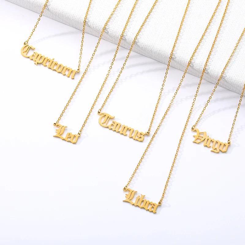Ожерелье из нержавеющей стали с 12 созвездиями, Старые Подвески с английскими буквами для женщин и мужчин, ожерелье с изображением Стрельца, Козерога, женское колье