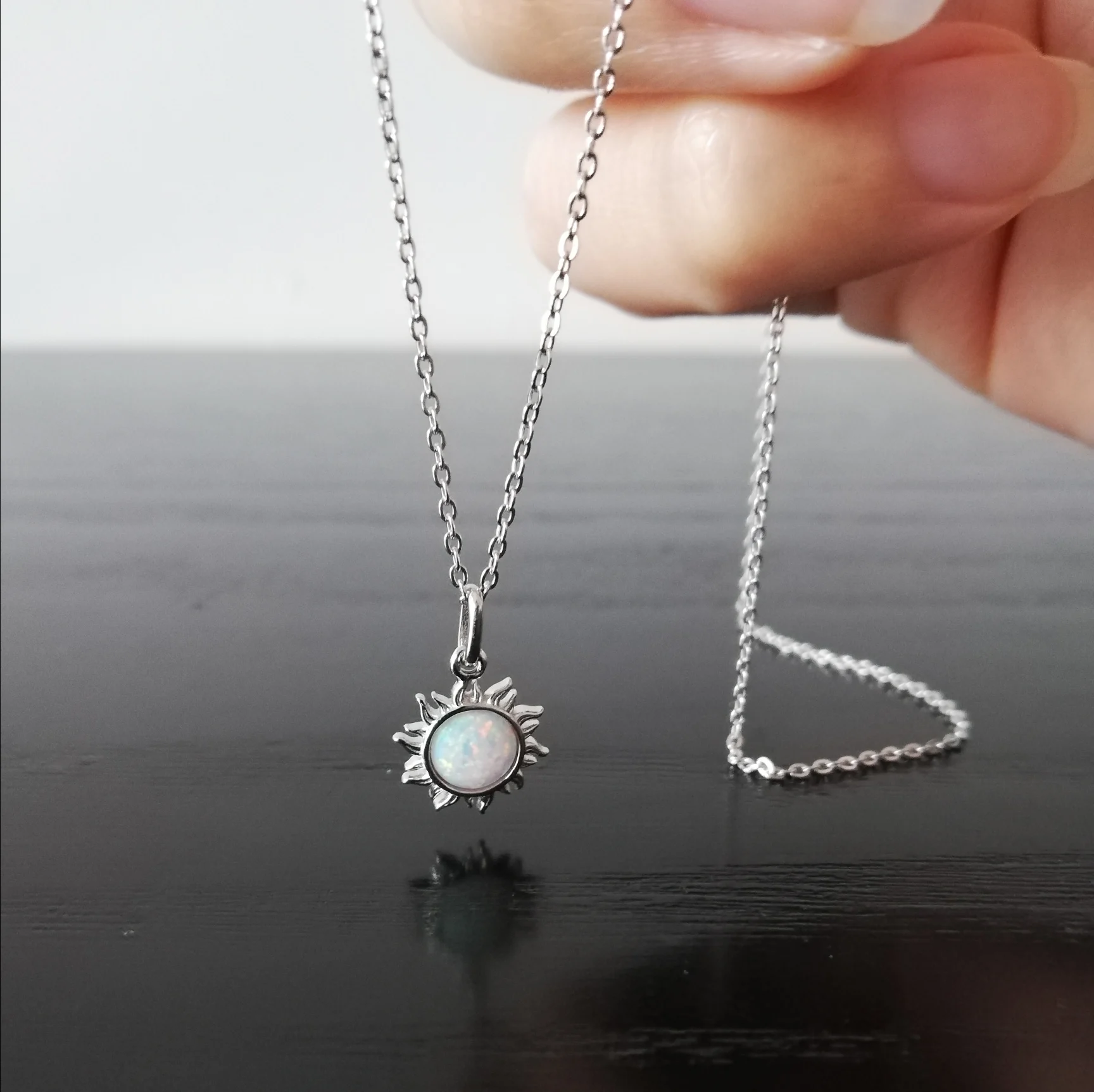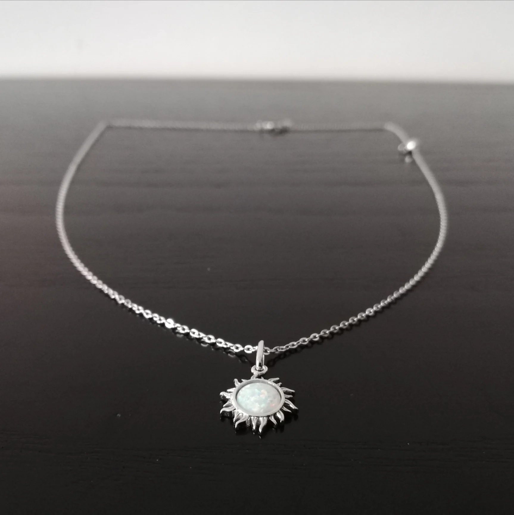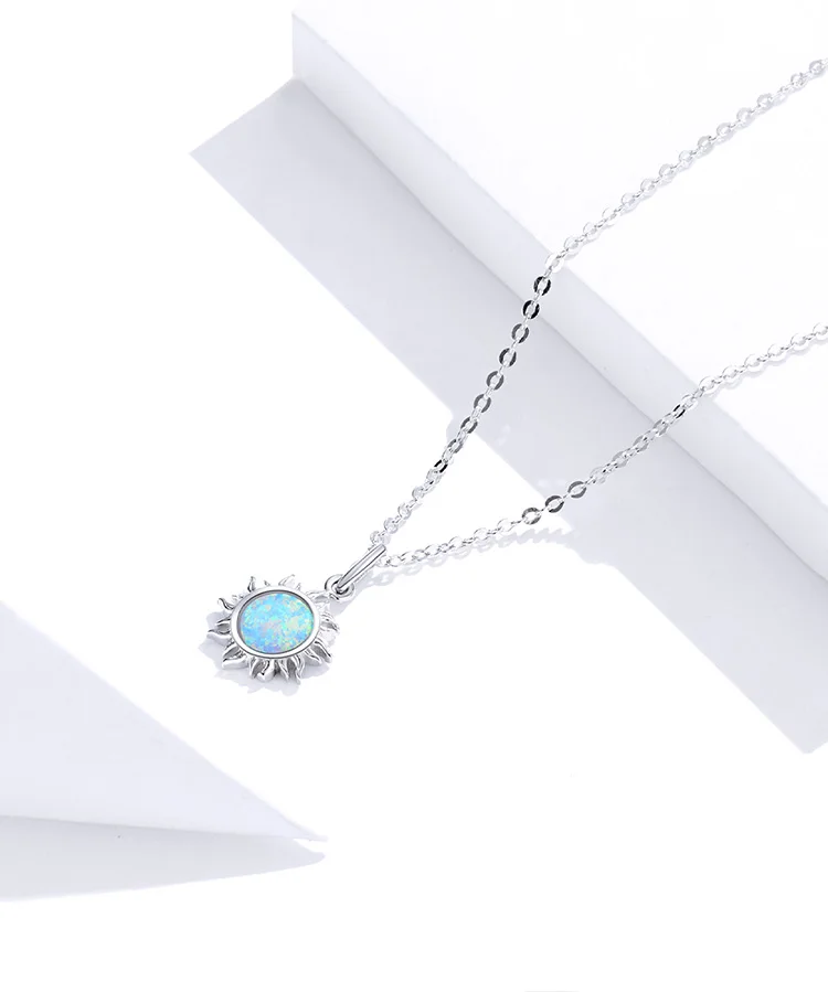 Bamoer подлинное серебро 925 пробы белый опал медальон в форме солнца ожерелье для женщин цепочка звено ожерелье серебро 925 ювелирные изделия 17,71''