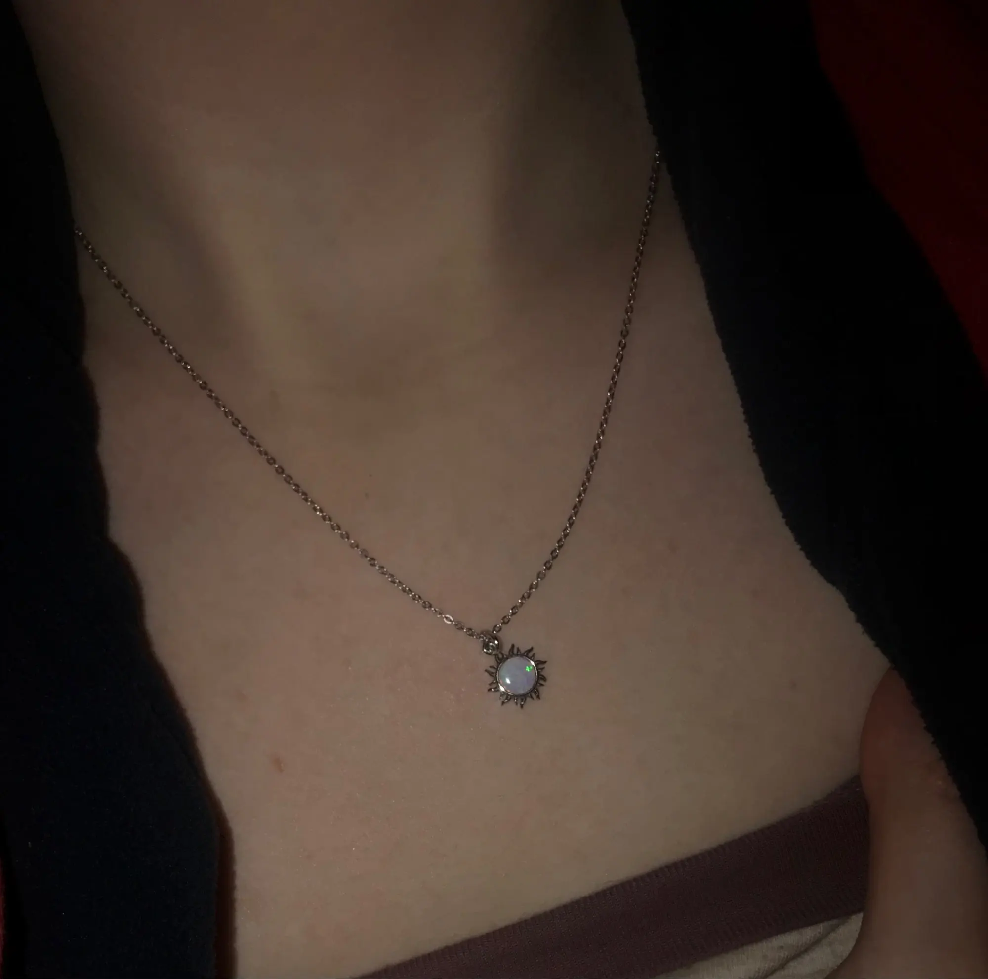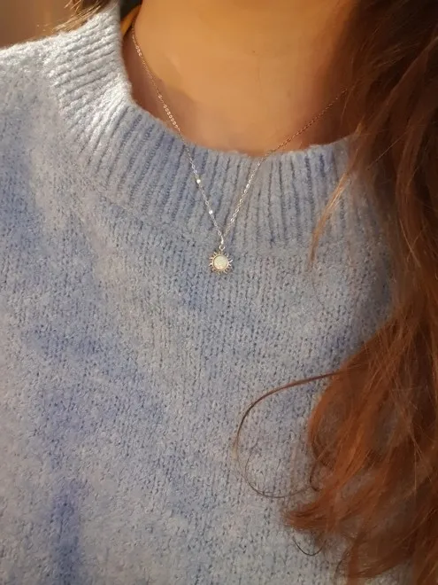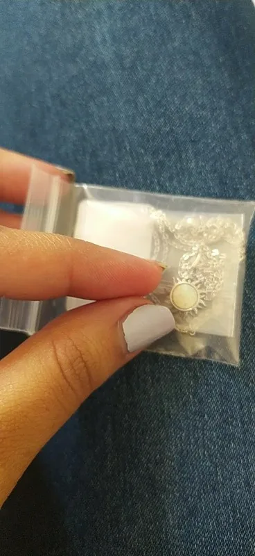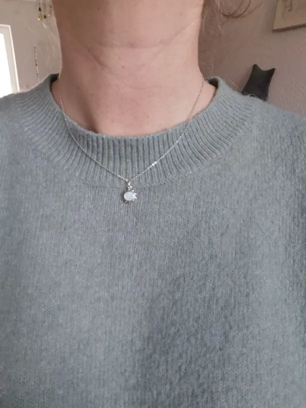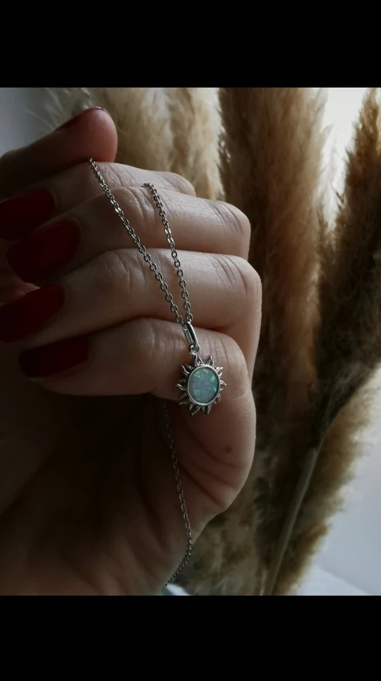 Красивый, нежный кулон. Опал красиво переливается, смотрится по-разному, в зависимости от того, как падает свет. На цепочке и на подвеске есть клеймо S925. Размер подвески = 1 см, диаметр самого камня = 0,7 см. Длина цепочки = 45 см, можно застегнуть на длину покороче - 36 см. Во Францию заказ пришел за 20 дней. Продавец положил в подарок мешочки и необычную серёжку (фото 5), спасибо :)