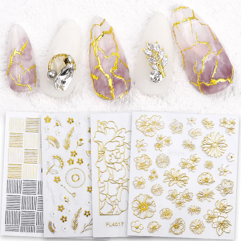 1 шт. Золотые Бронзовые 3D наклейки на ногти цветок волнистые линии Дизайн клейкие металлические наклейки очаровательные наклейки для дизайна ногтей Декорации для маникюра