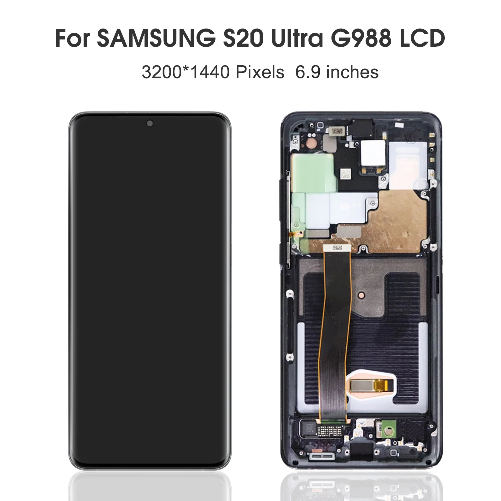 Оригинальный экран для Galaxy S20 Ultra с рамкой, ЖК-дисплей для Samsung Galaxy S20 Ultra G988BDS, сенсорный экран, дигитайзеры