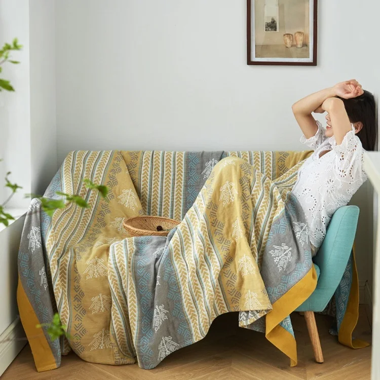 Одеяло Junwell, 100% хлопок, муслиновое, дышащее, для кровати, дивана, путешествий, в богемном стиле, большое, мягкое