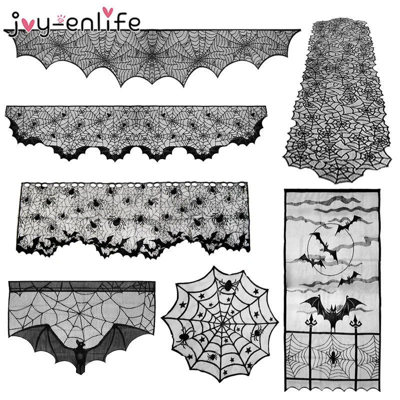 Украшение для Хэллоуина AerWo, Черное кружево, паутина на камин, на...