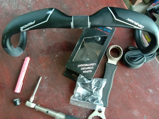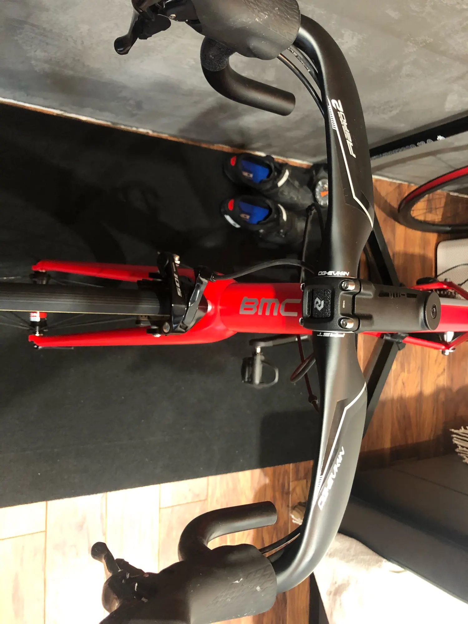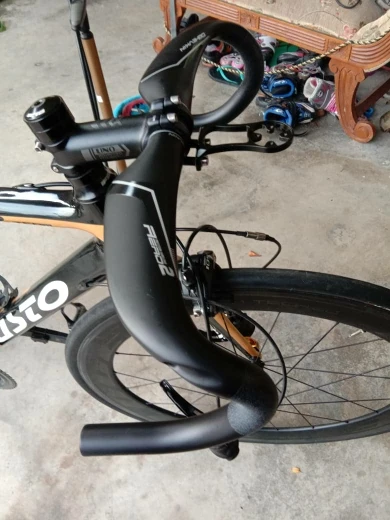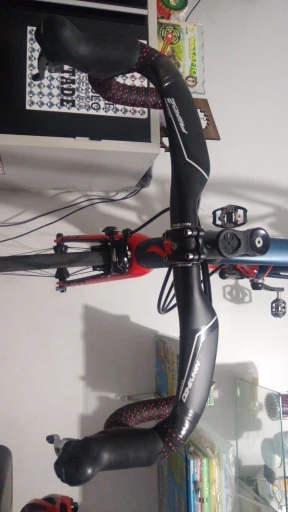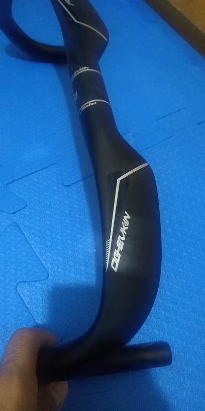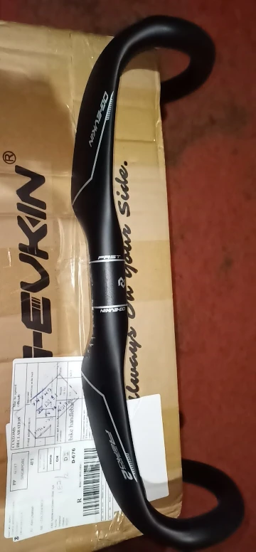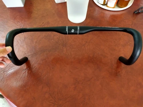 оказалось чуть лучше чем думал. заказывал 420 размер. на шифтерах ширина 400! на дропах 420. вес 199гр. качество субьективно на 4+ (немного гуляет толщина стенки и отверстия под проводку можно немного шлифануть натфилем). доехала посылка до москвы за 2 недели. еще фрикционная поверхность для хомутов шифтеров по мойму немного выше должна быть. у меня закрепились хомуты на самый край. в остальном все тип топ. наклейки качественные, эрганомика удобная, при педалировании стоя может немного (реально совсем немного 1-1.5 мм) прогибаться. как будет на дороге вести - хз, щас зима. на станке кручу - все ок. дропы почти параллельны земле: угол 3-5 градусов, если шифтеры ставить чтоб на фрикциоке стояли и было удобно. на дропах есть где ухватиться. кароче приятный руль.