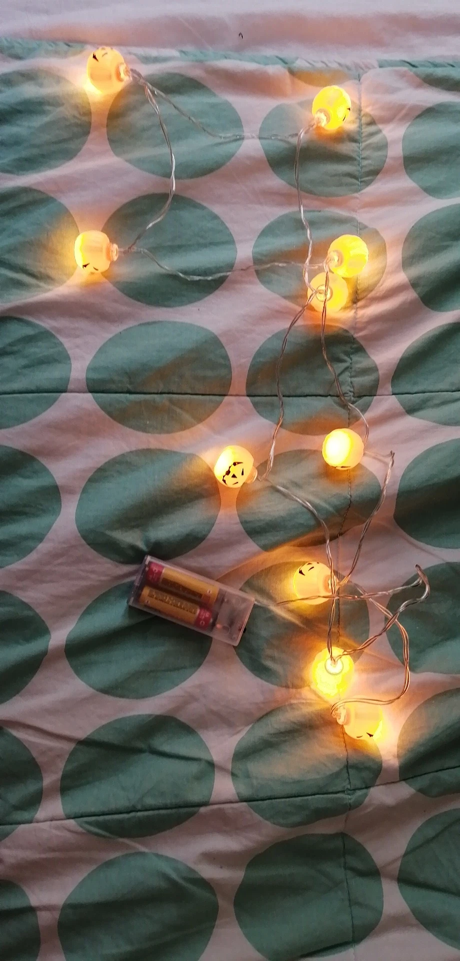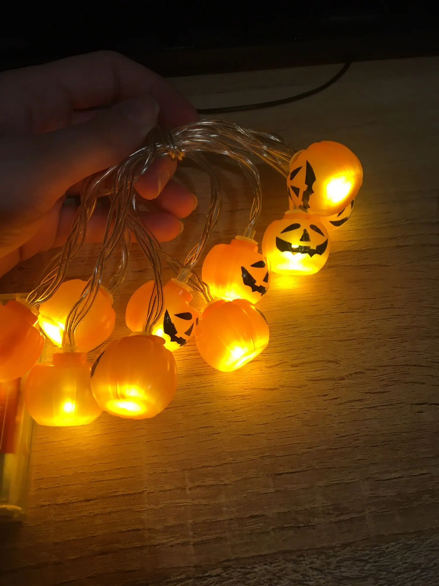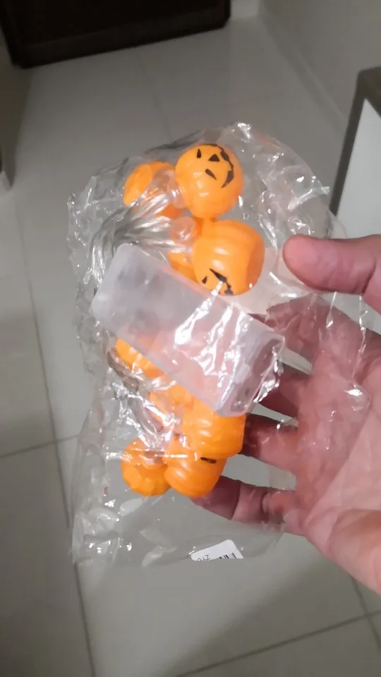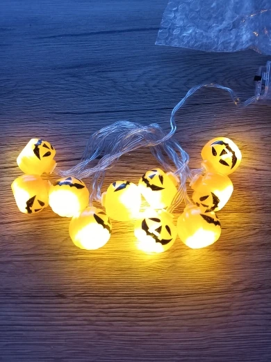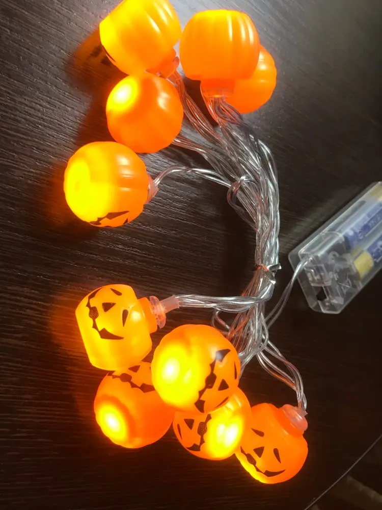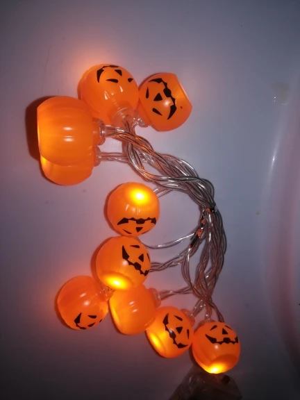 Гирлянда красивая. Но тыквочки очень маленькие. Продавец не соизволил гирлянду упаковать достойно, поэтому, корпус, в который вставляются батарейки, пришел с небольшой трещиной.