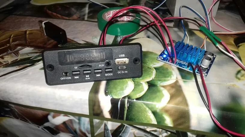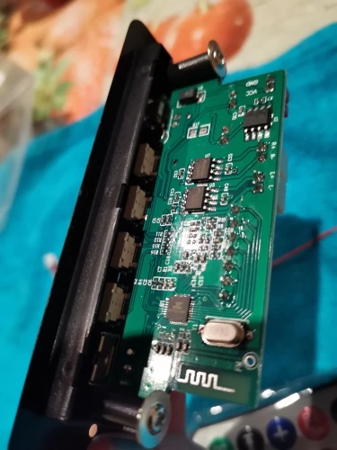Работает. Звук - две микросхемы MIX2018A, питание CX8824. BlueTooth BP02213-26A4. Есть микрофон, запись работает. Качество звука не проверял, проверю дополню отзыв.