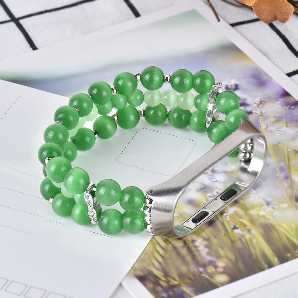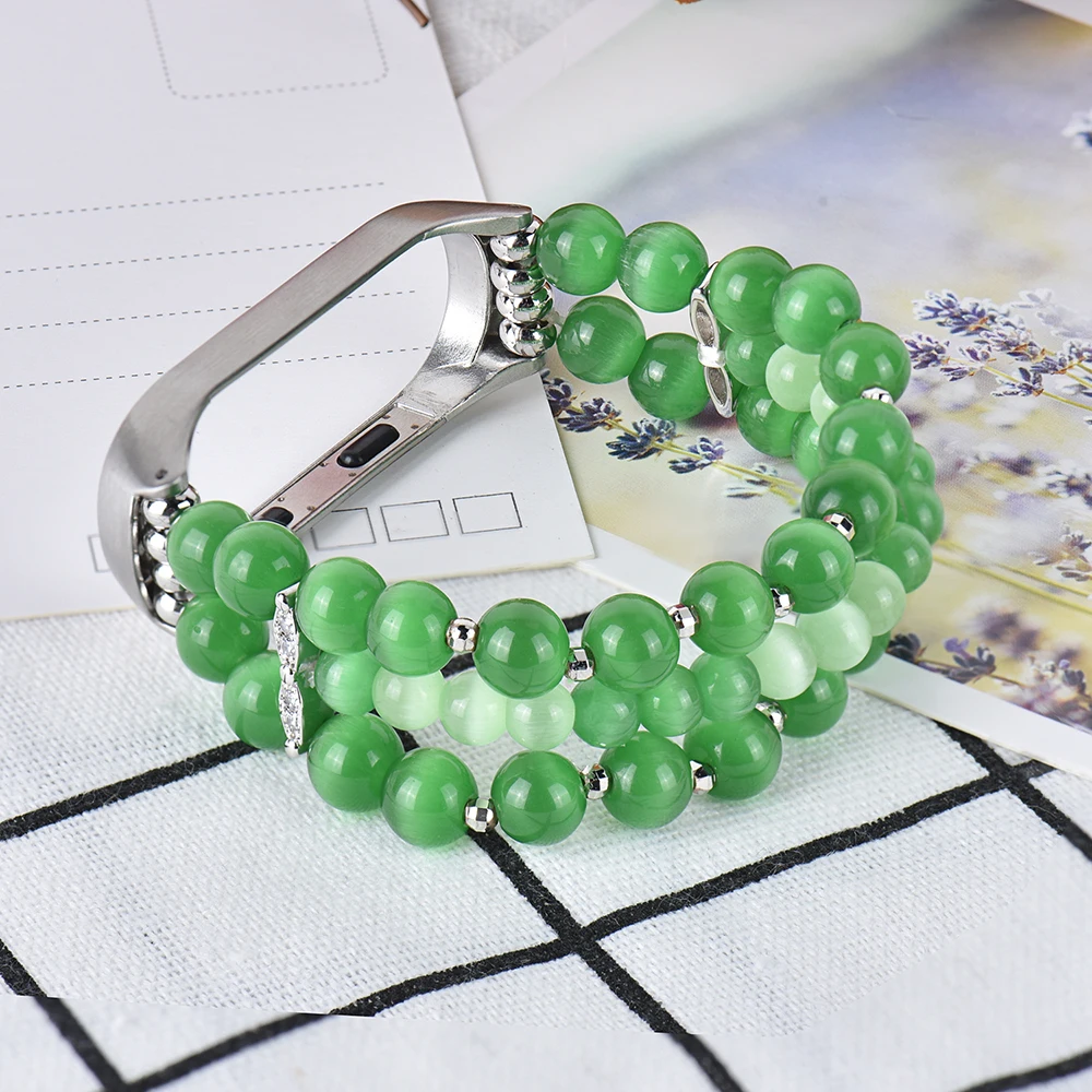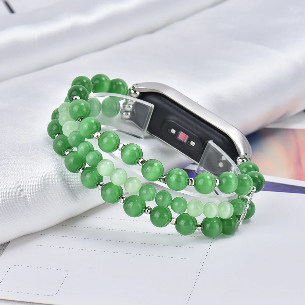 Ремешок для Xiaomi Mi Band 4, браслет с зелеными бусинами для Mi Band 3, роскошный браслет для смарт-часов, 56