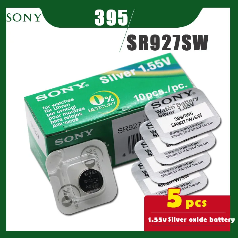 5 шт.лот SONY Оригинал 395 SR927SW 1,55 в блок кнопок из оксида серебра 399395 LR927 AG7 для часов игрушек упаковка с одной текстурой