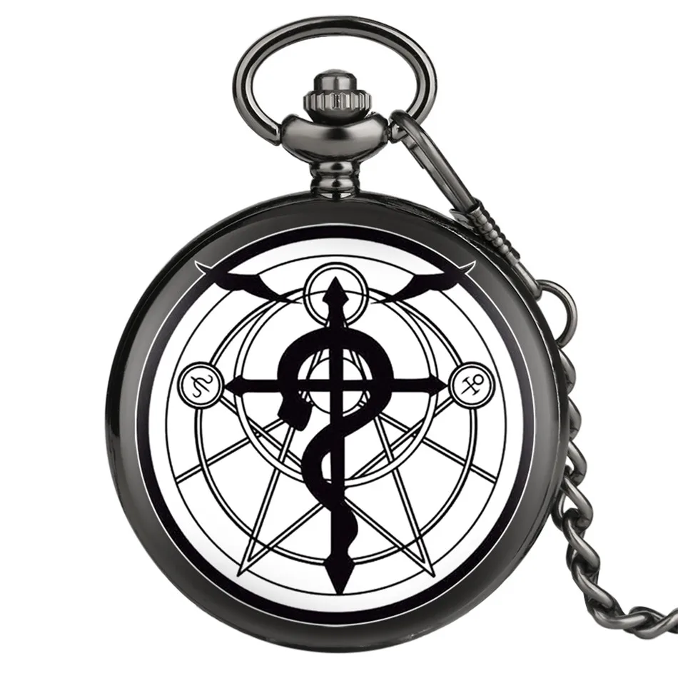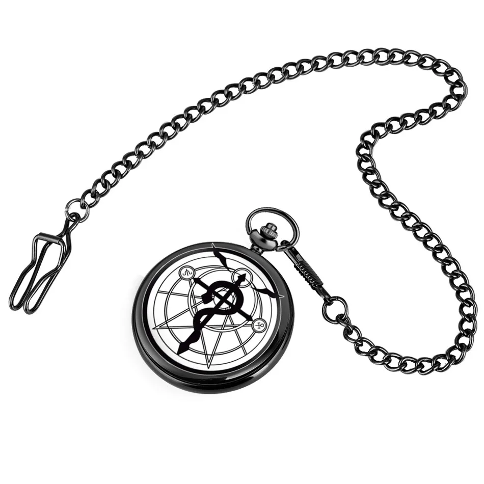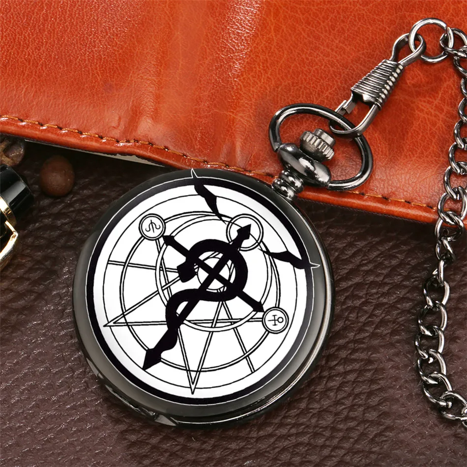 Черные карманные часы в стиле ретро с изображением алхимика