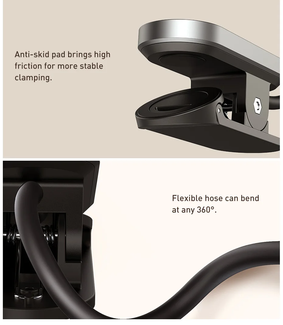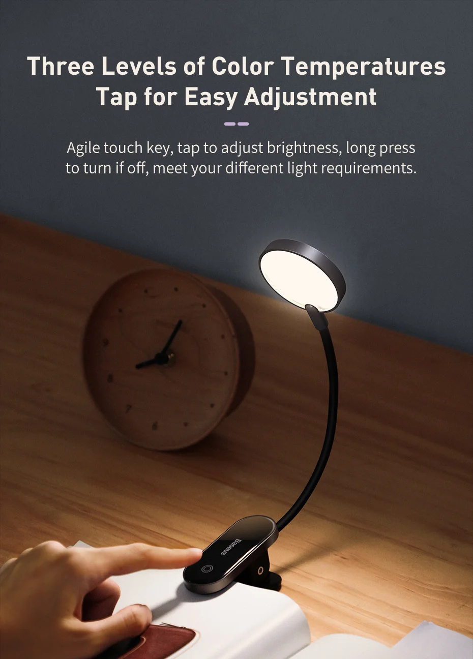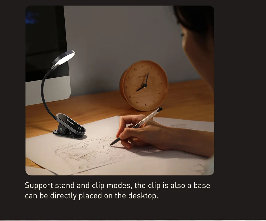 Светодиодный аккумуляторный светильник на прищепке. Сделан добротно, светит ярко, имеет три режима яркости света. Прищепка и гибкая ножка выполнены качественно, светильник крепиться надёжно. Продукт и магазин Baseus рекомендую!