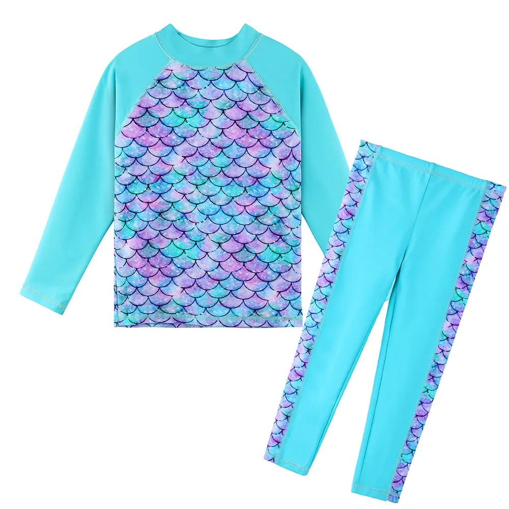 Купальник для девочек BAOHULU UPF50 + синий, с длинным рукавом