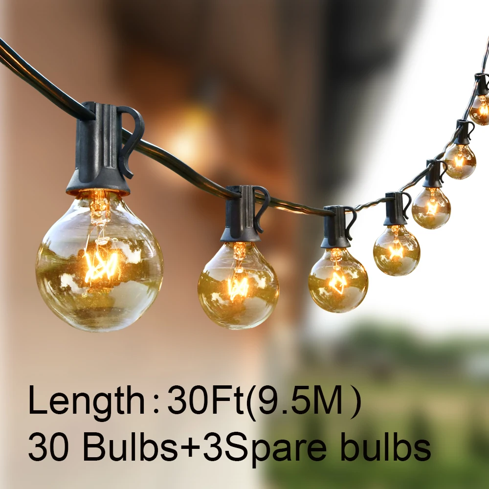 Гирлянсветильник G40 для внутреннего дворика, уличный шнурок с лампочками, новогодвечерние праздничный декоративный садовый шнурок с лампочками, 50 футов