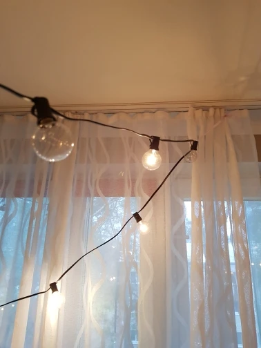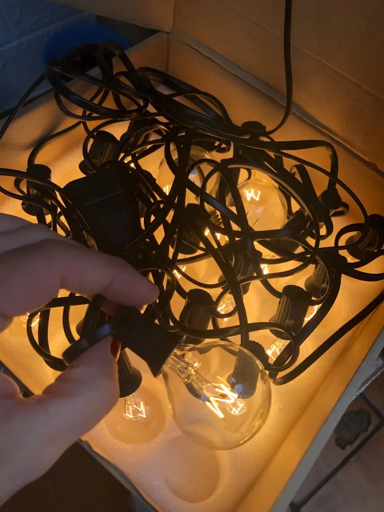 Очень довольна гирляндой! Заказывала в конце августа, а пришло только 21 октября на почту. Посылка долго зависала то в сортировочном пункте, то у нас на таможне. Все лампочки целые, все горят. Свет тёплый . Очень уютной с ними станет беседка.