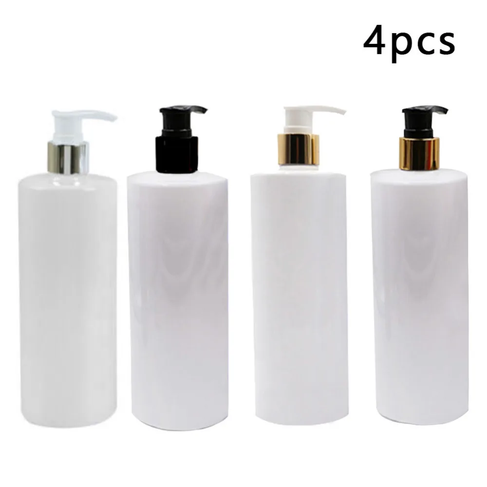4 шт., 500 мл, белая цилиндрическая пластиковая бутылка из ПЭТ, насос для лосьона, большой нетоксичный, без БФА, для путешествий, бутылка для шампуня, косметики
