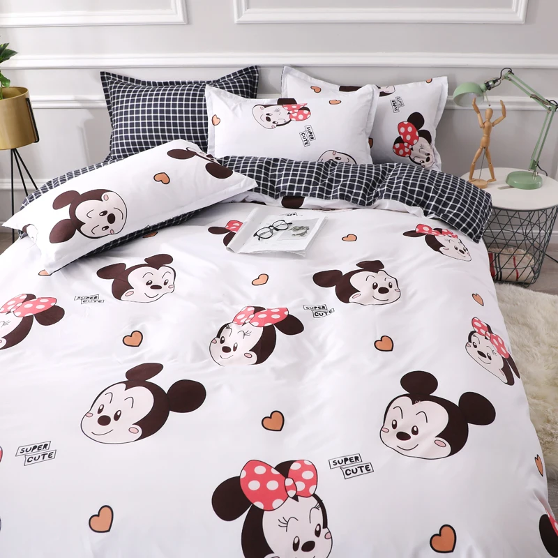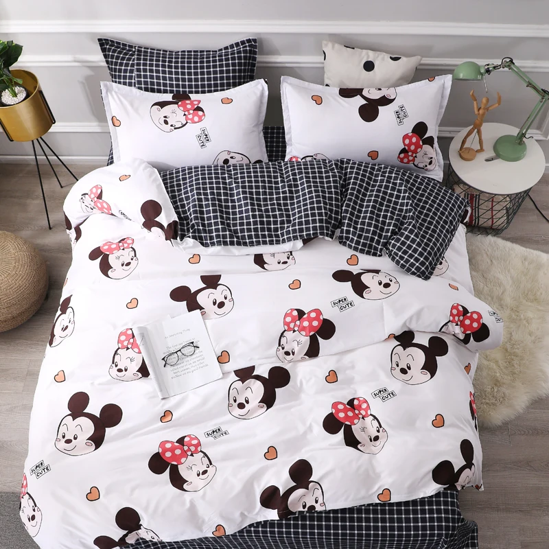 Милое постельное бельё и принадлежности из хлопка с Микки и Минни Маус, постельное белье и принадлежности, пододеяльник, простыня, наволочки для женщин и взрослых