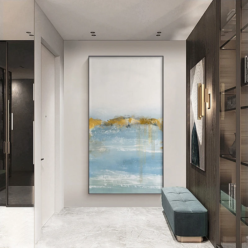 Абстрактные золотые настенные картины, синие, белые морские пейзажи...