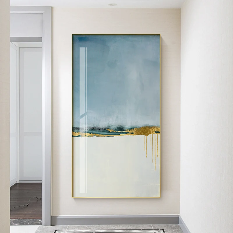 Абстрактный синий белый пейзаж Холст Плакаты печать золотые настенн...