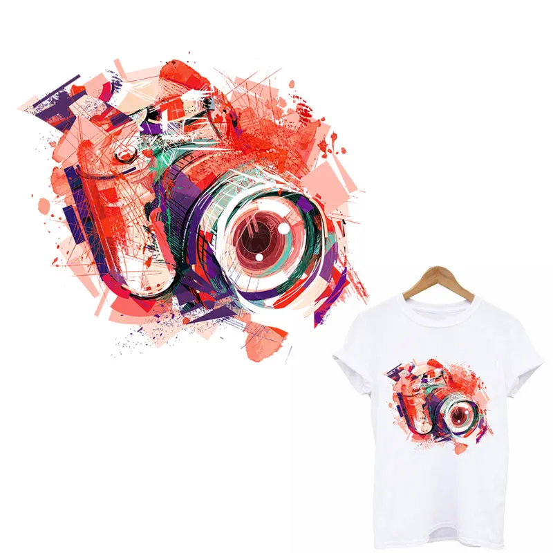 Модная аппликация для камеры, наклейки на одежду, термонаклейки, термонаклейки, наклейки для одежды, женская футболка, одежда в полоску